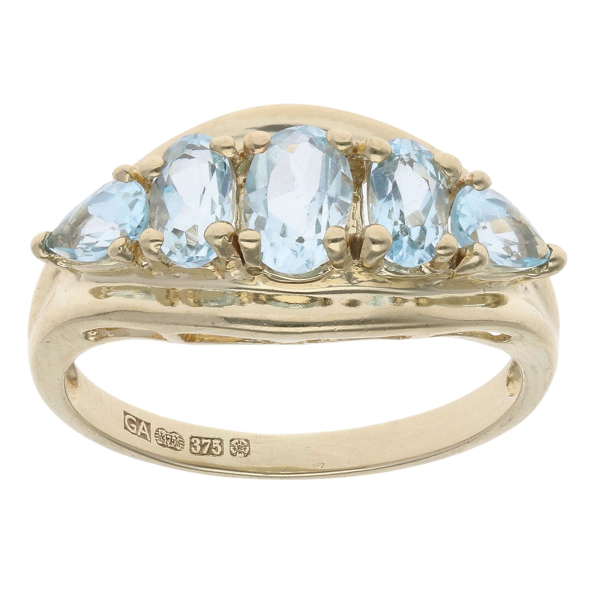 9ct Yellow Gold Aquamarine Five Stone Ring