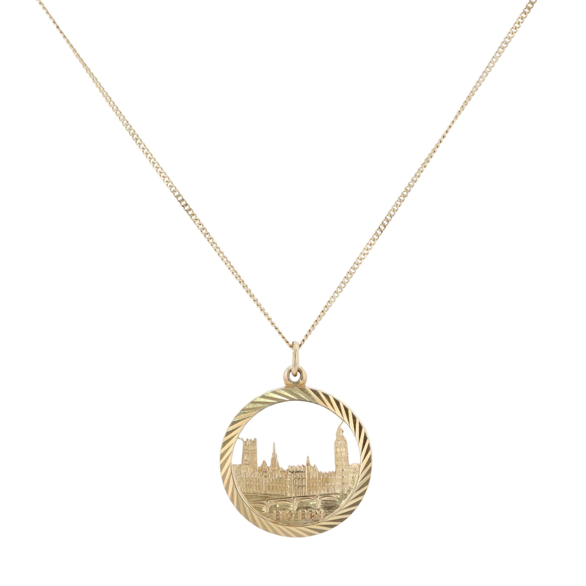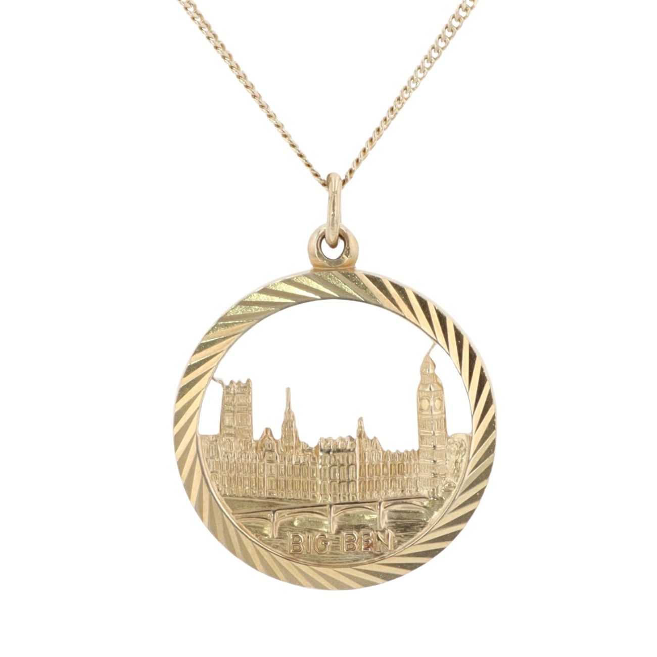 9ct Yellow Gold Big Ben Pendant And Curb Chain 20"