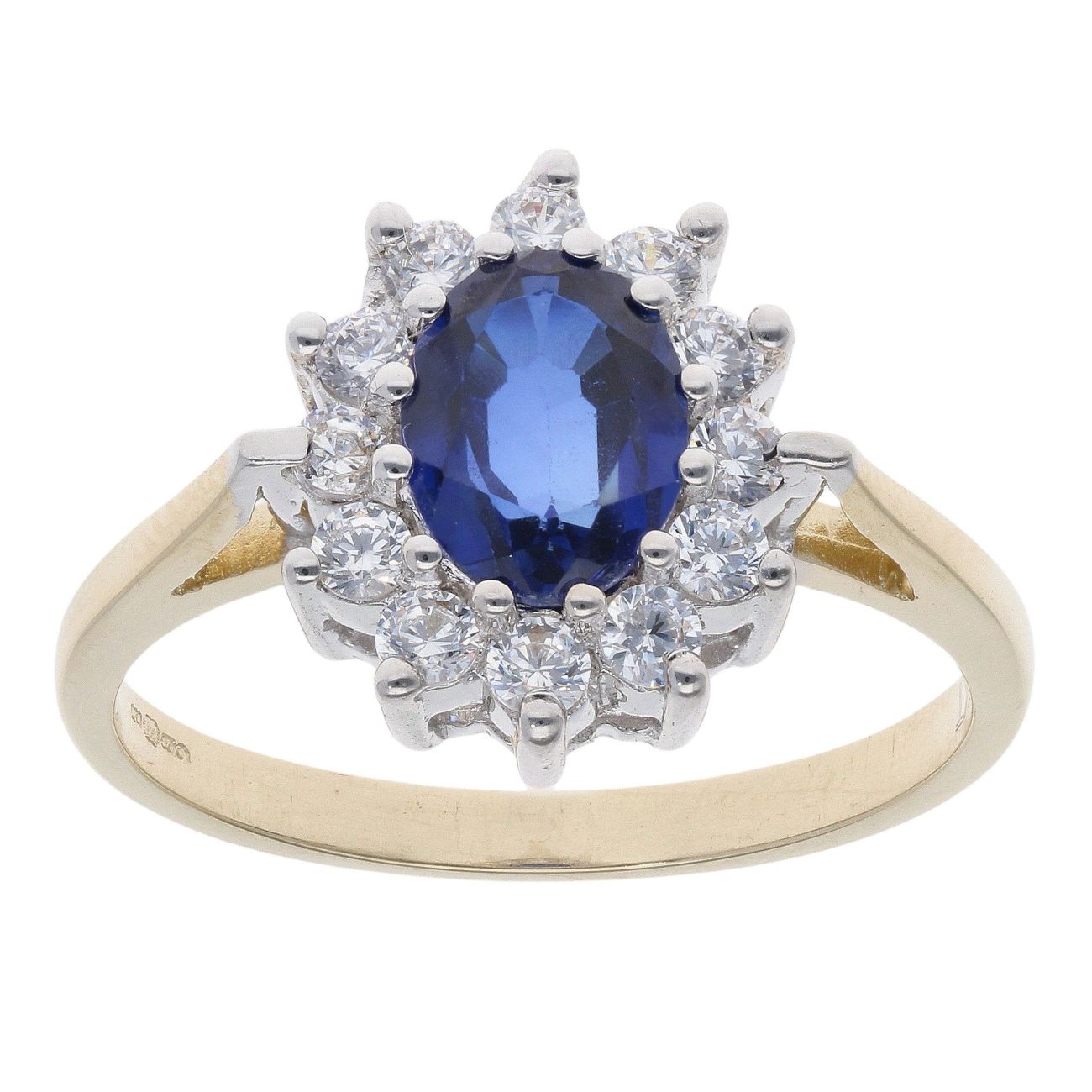 9ct Yellow Gold Blue Gemstone And Cubic Zirconia Cluster Ring