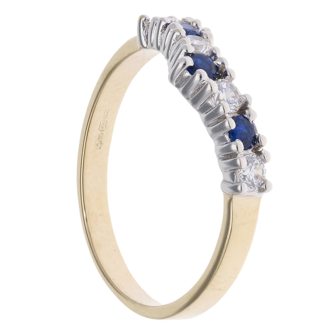 9ct Yellow Gold Blue Gemstone And Cubic Zirconia Wishbone Ring