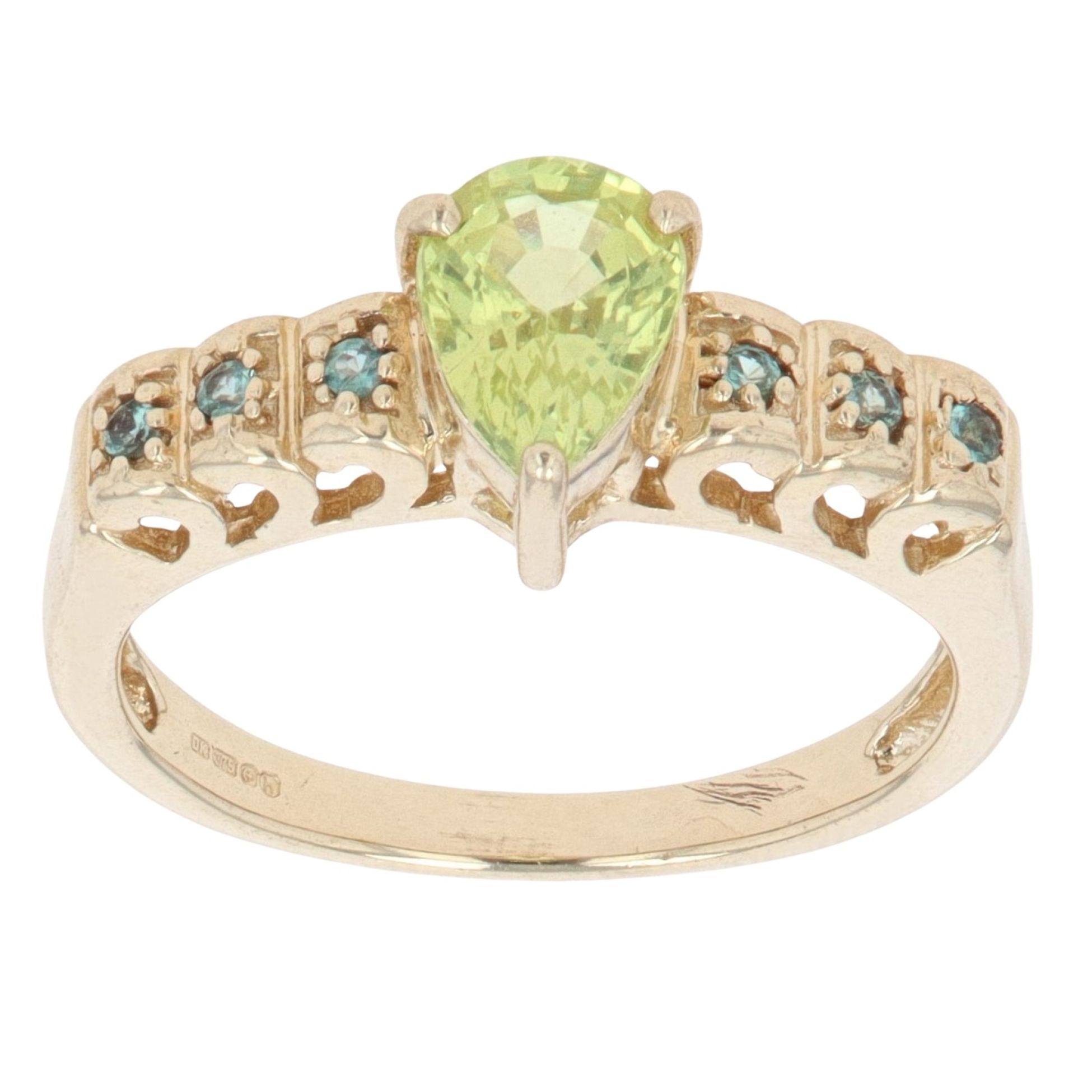 9ct Yellow Gold Blue Gemstone And Peridot Ring