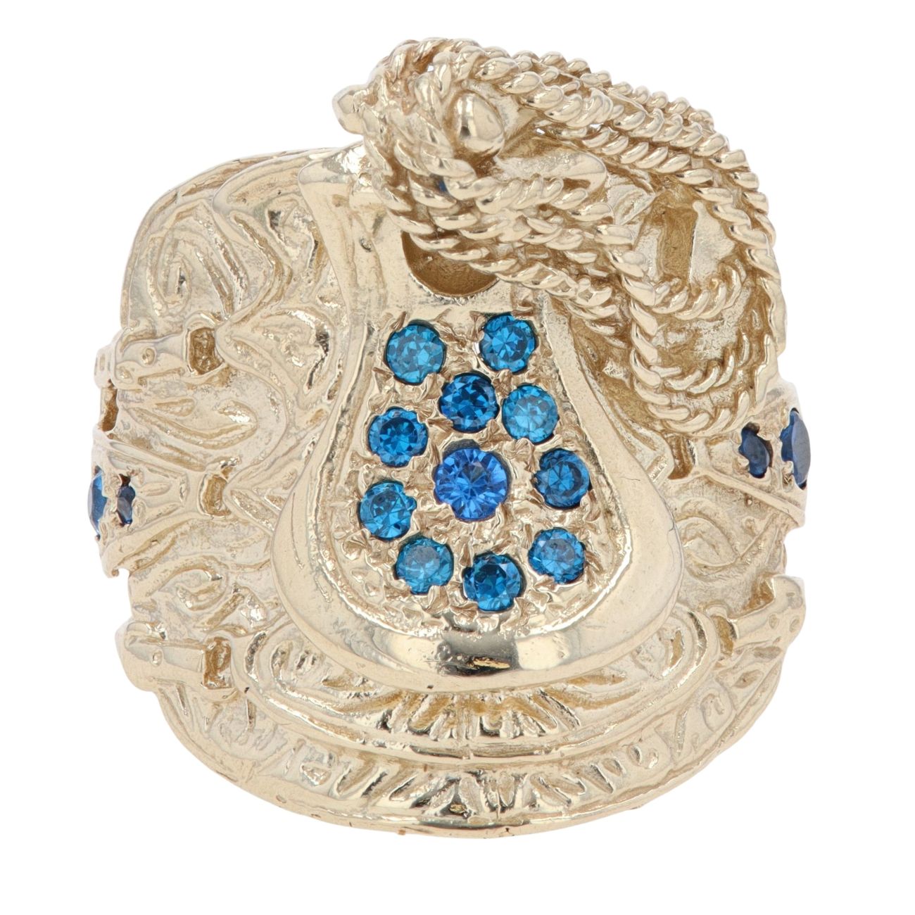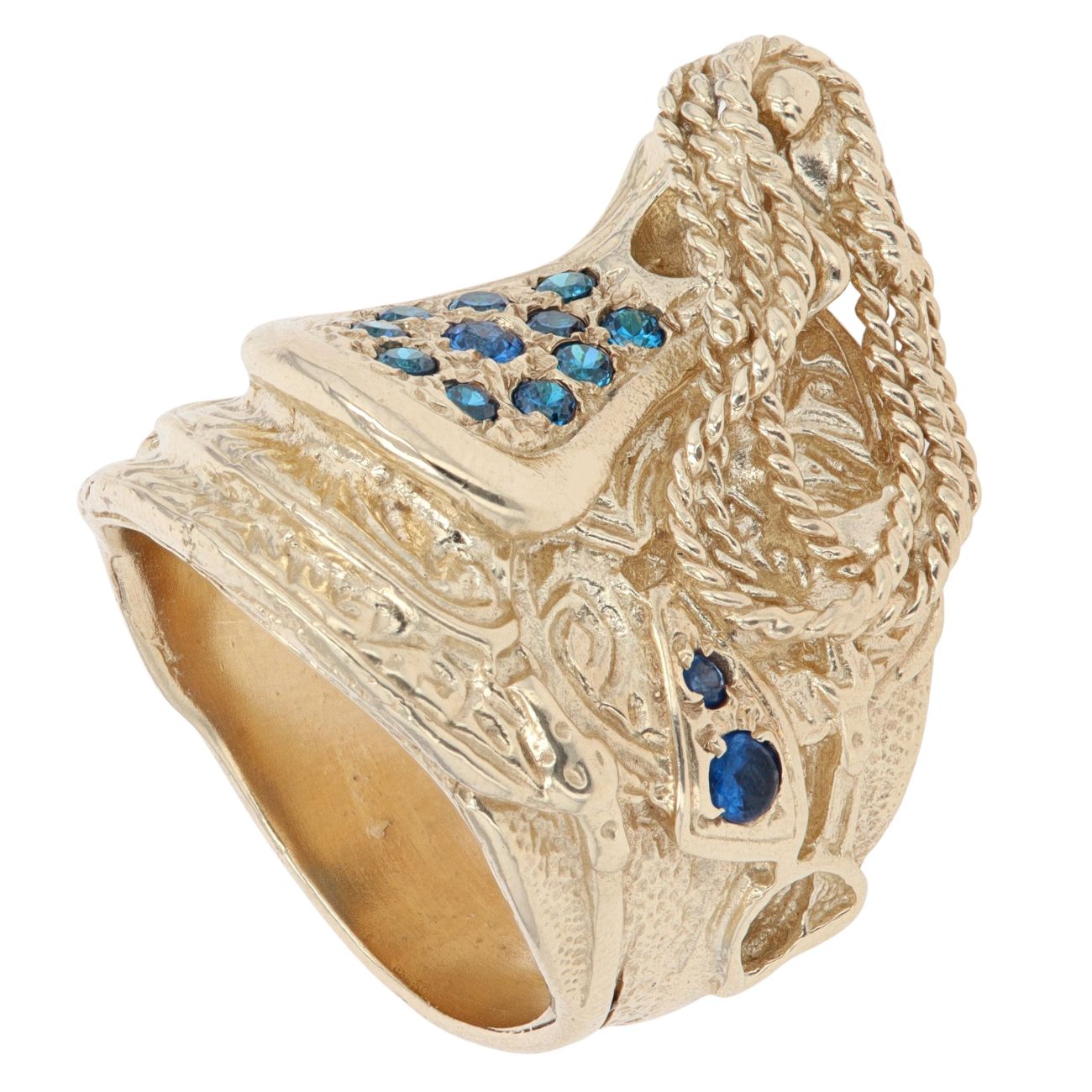 9ct Yellow Gold Blue Gemstone Saddle Ring