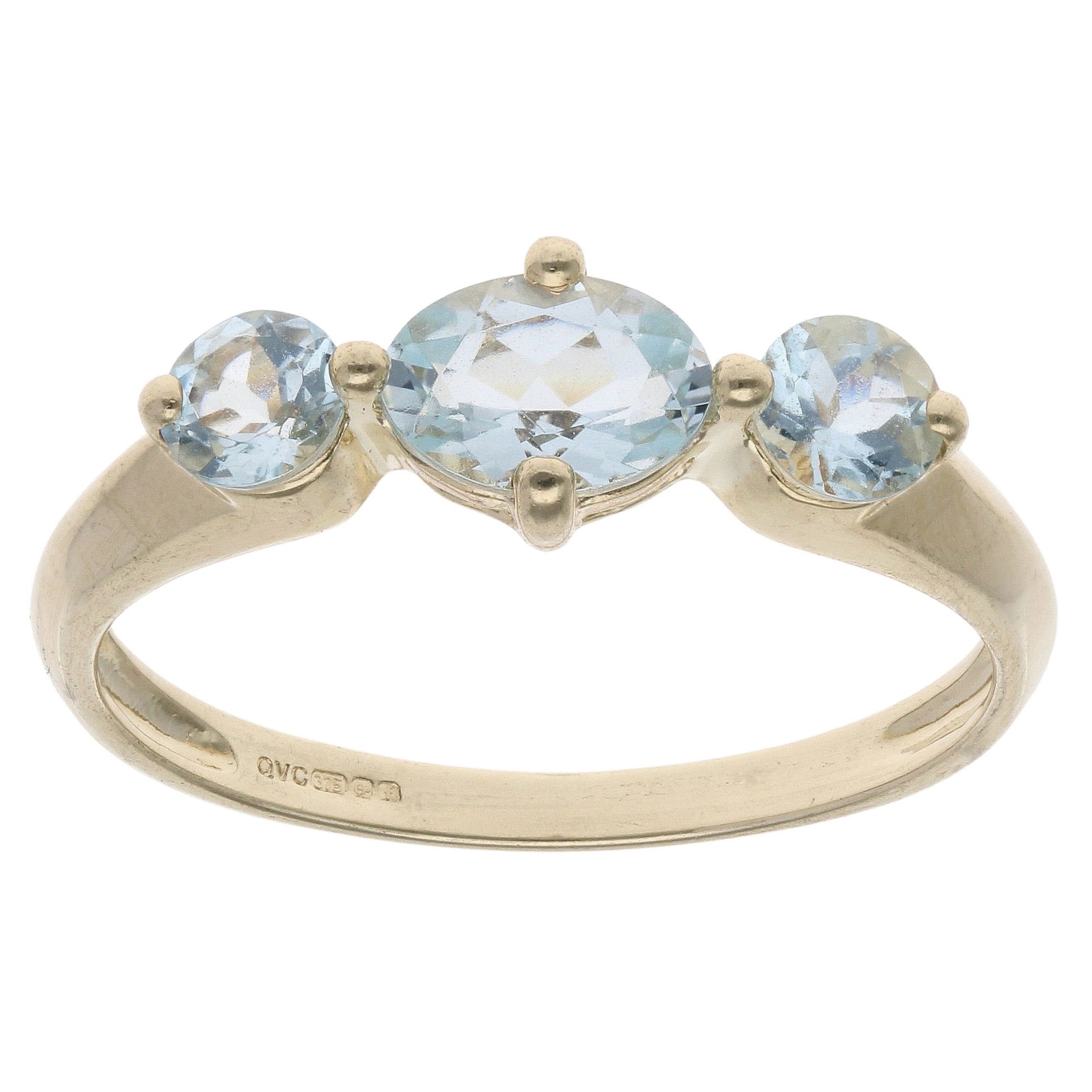 9ct Yellow Gold Blue Gemstone Three Stone Ring