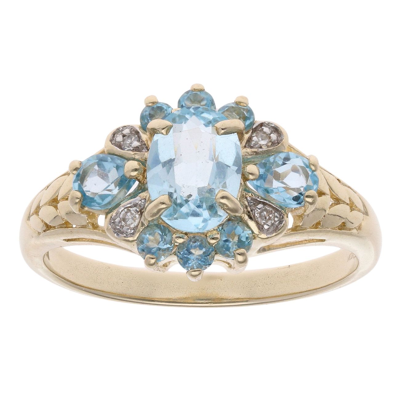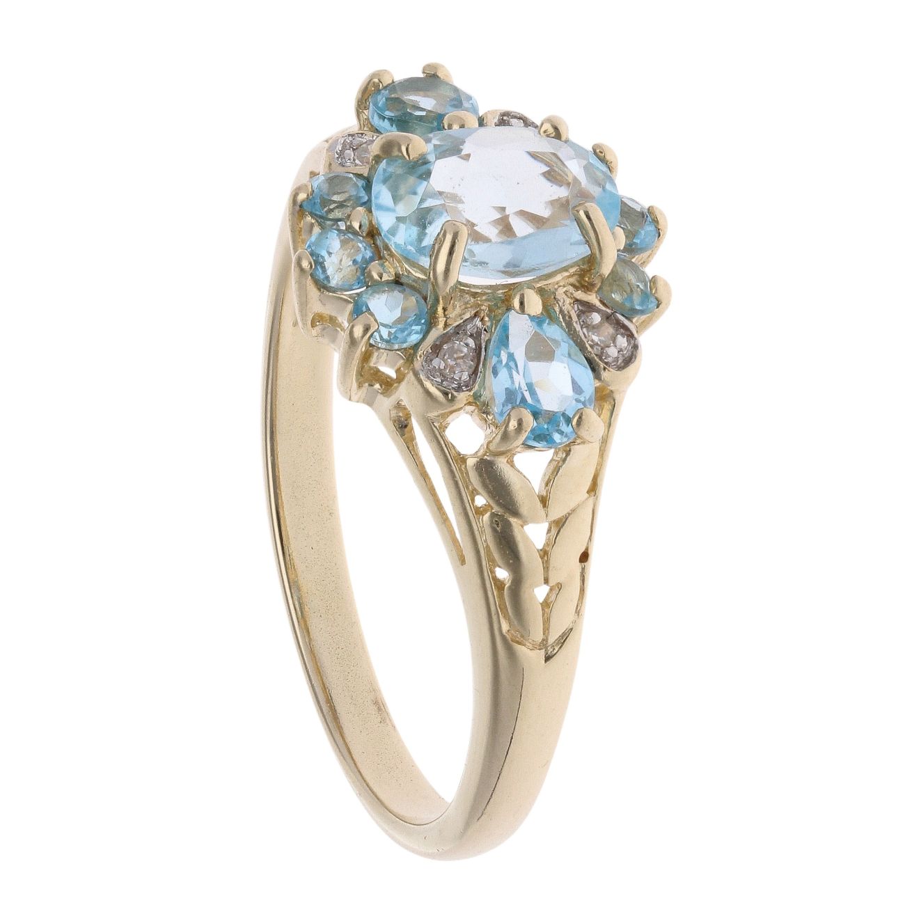 9ct Yellow Gold Blue Topaz and 0.05ct Diamond Cluster Ring