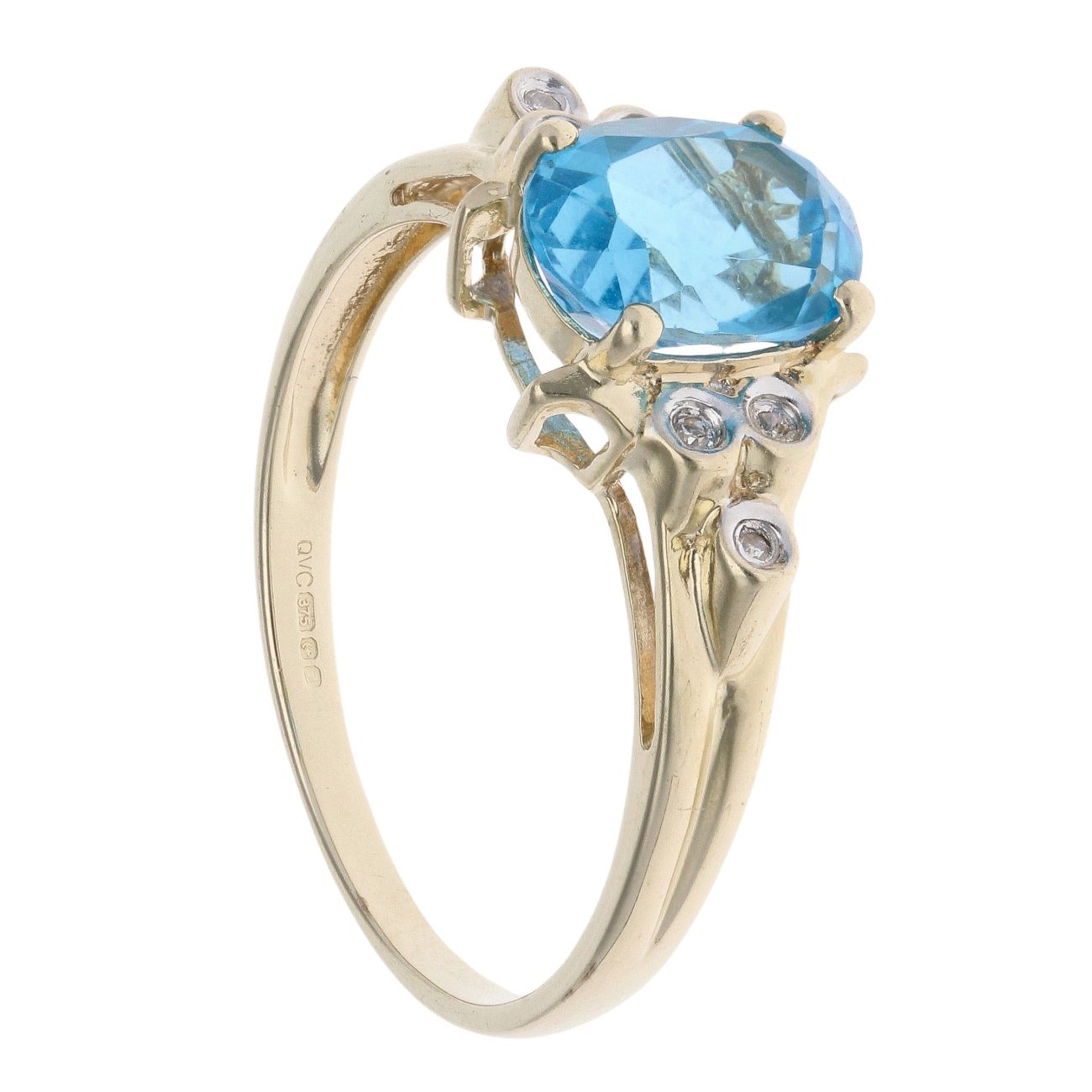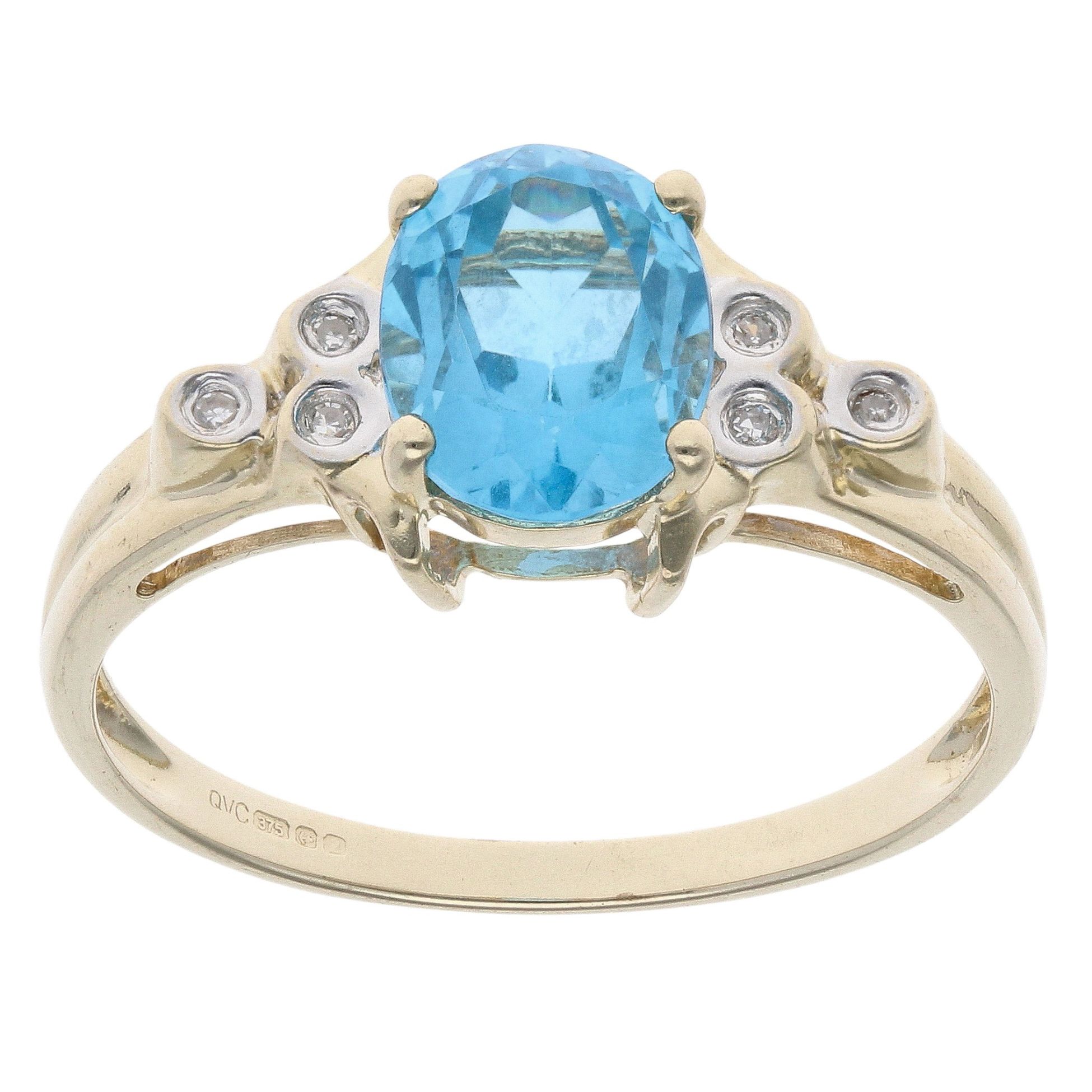 9ct Yellow Gold Blue Topaz and 0.10ct Diamond Stone Set Ring