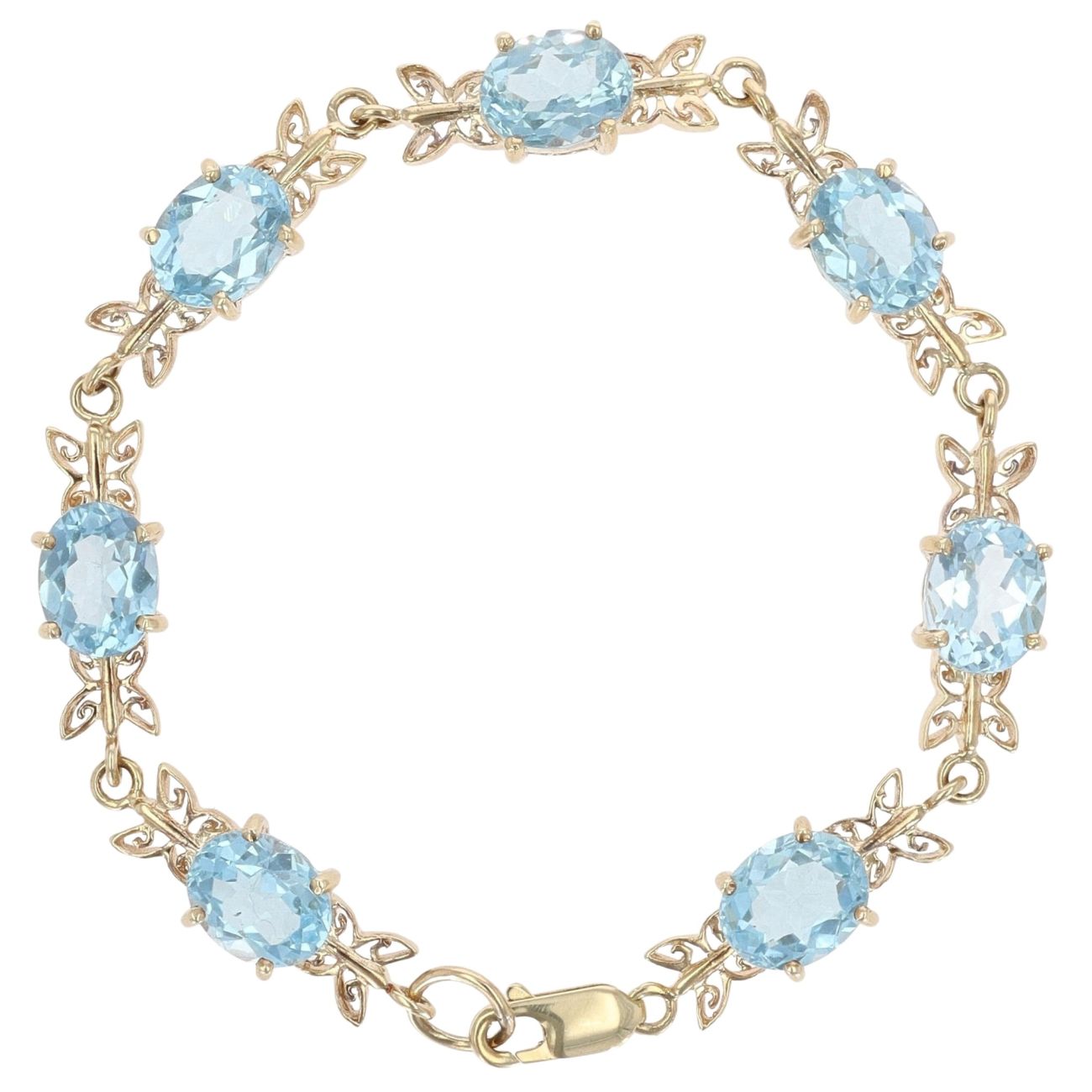 9ct Yellow Gold Blue Topaz Butterfly Bracelet 7.5"