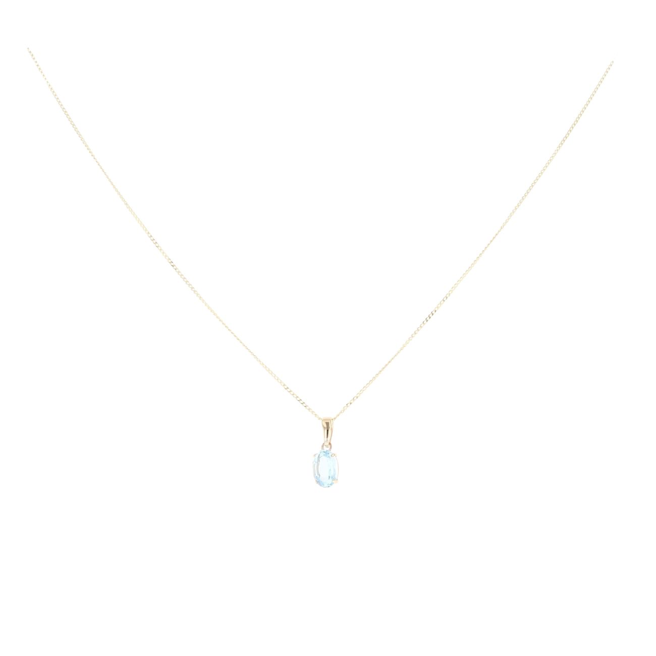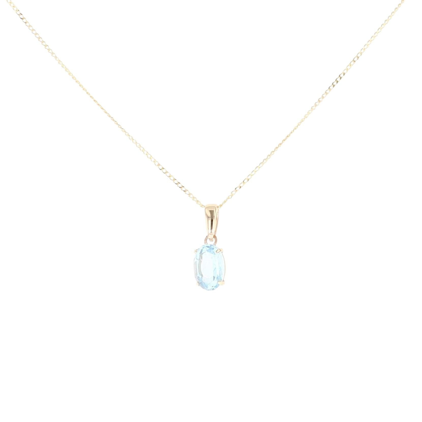 9ct Yellow Gold Blue Topaz Pendant And Chain 18"
