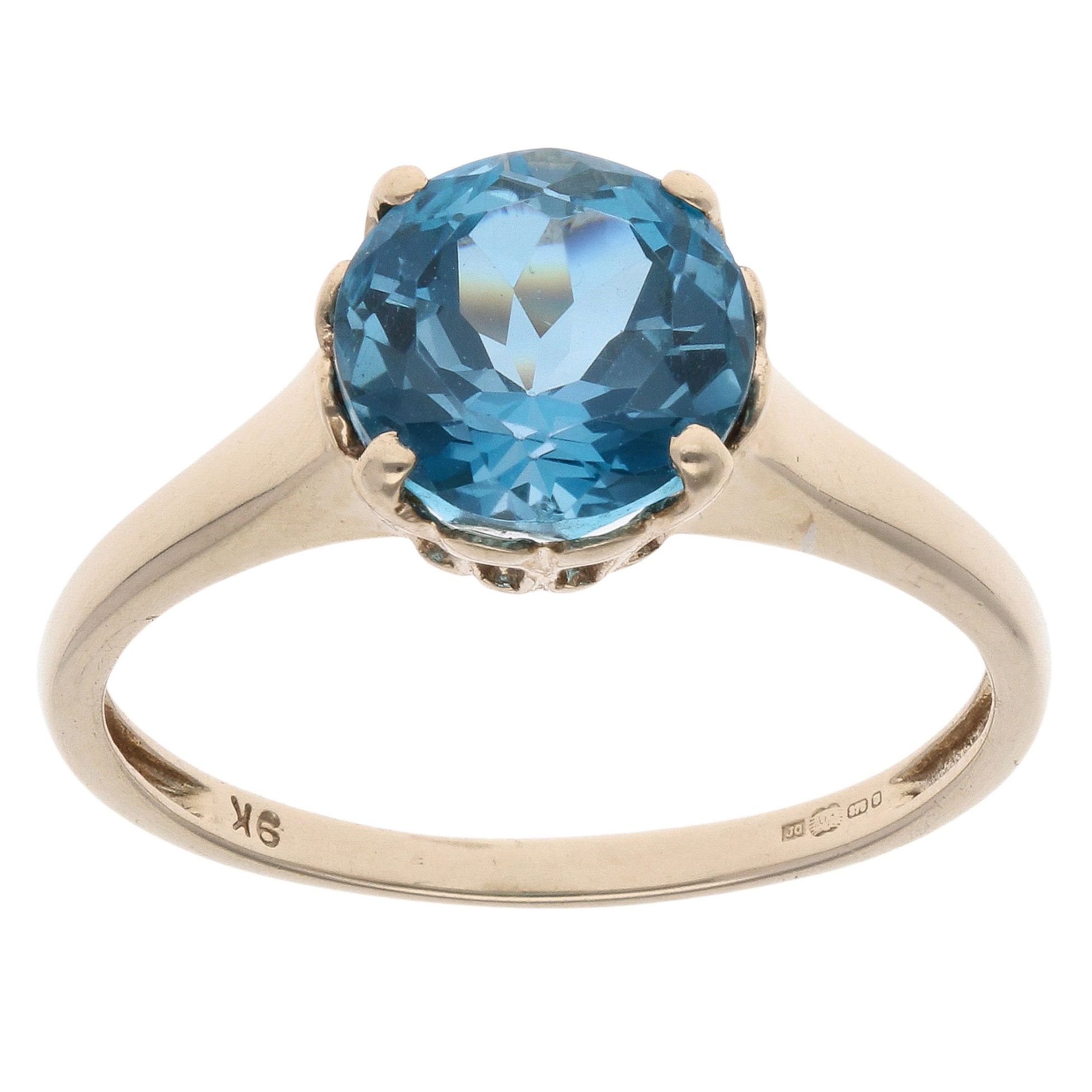 9ct Yellow Gold Blue Topaz Single Stone Ring