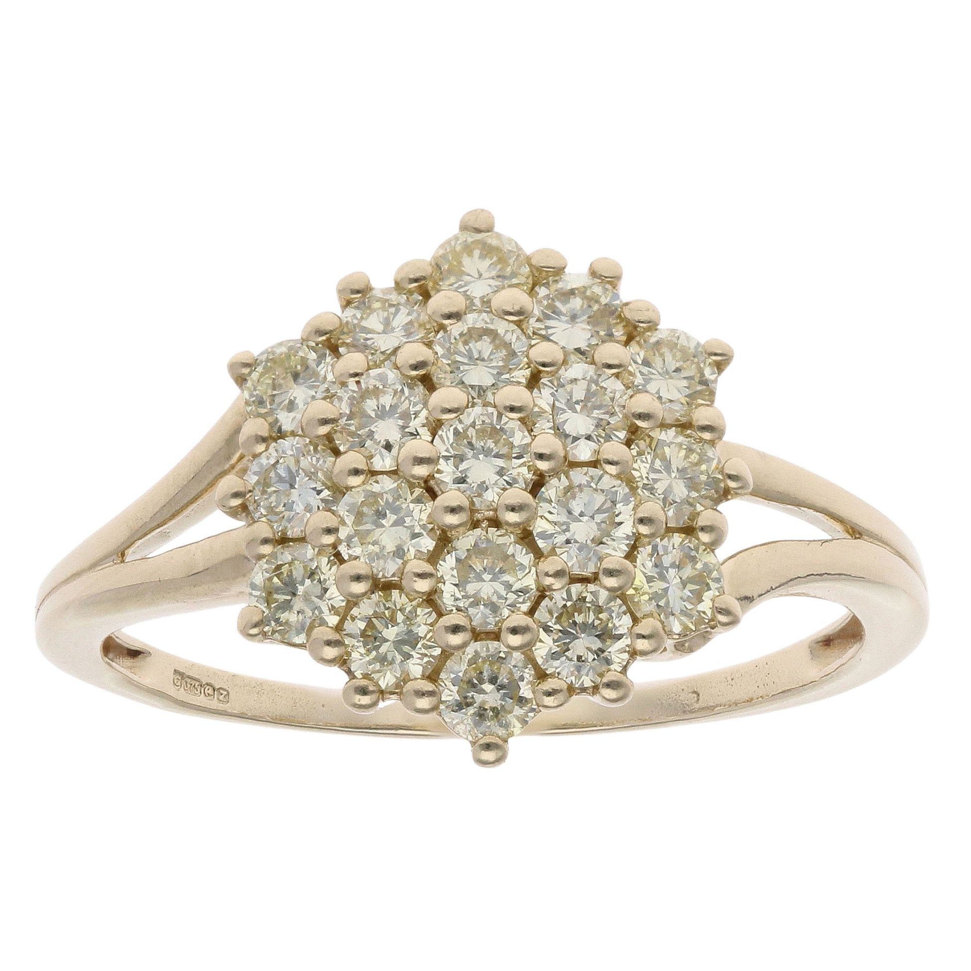 9ct Yellow Gold Brilliant Cut 1.00ct Yellow Diamond Cluster Ring