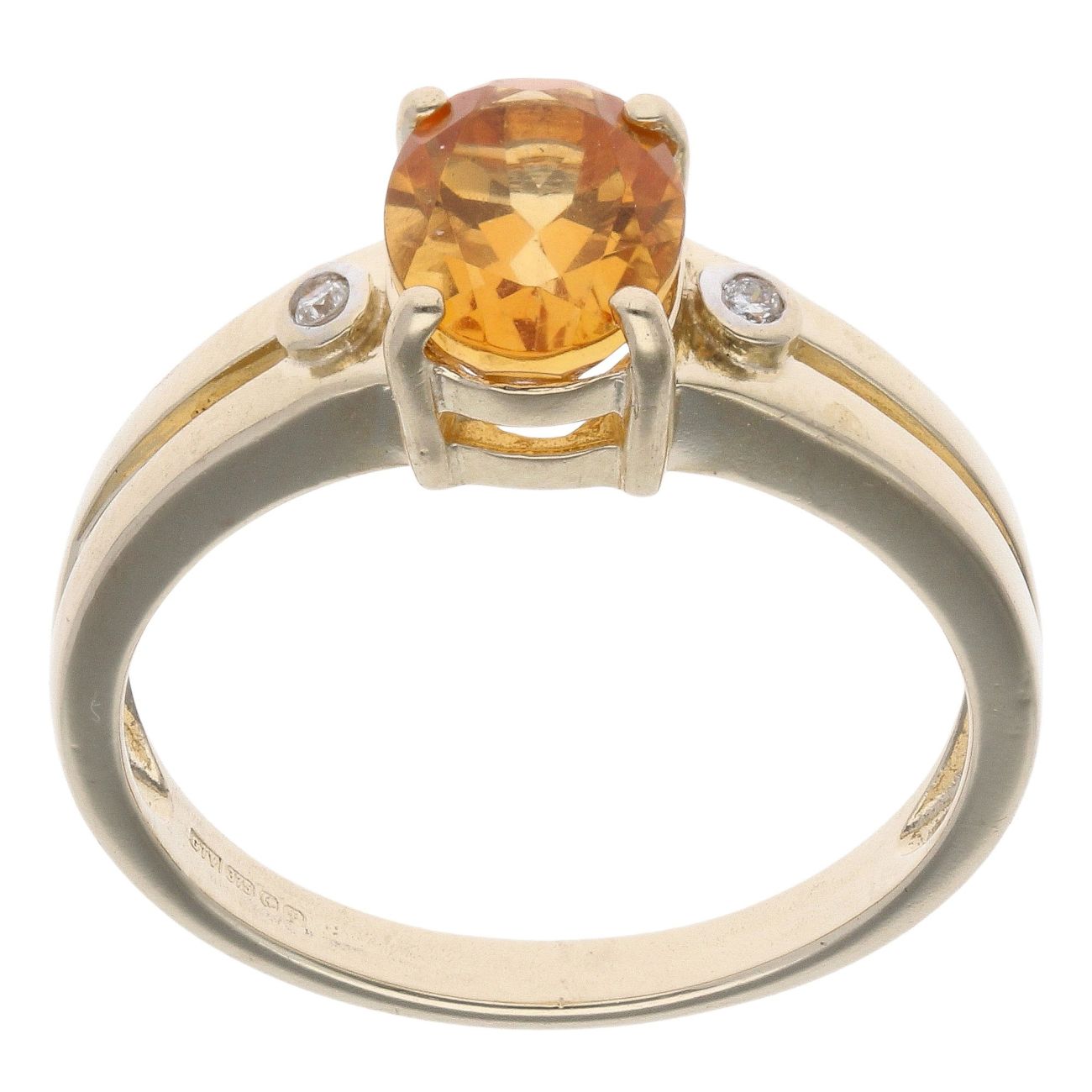 9ct Yellow Gold Citrine and 0.02ct Single Stone Ring