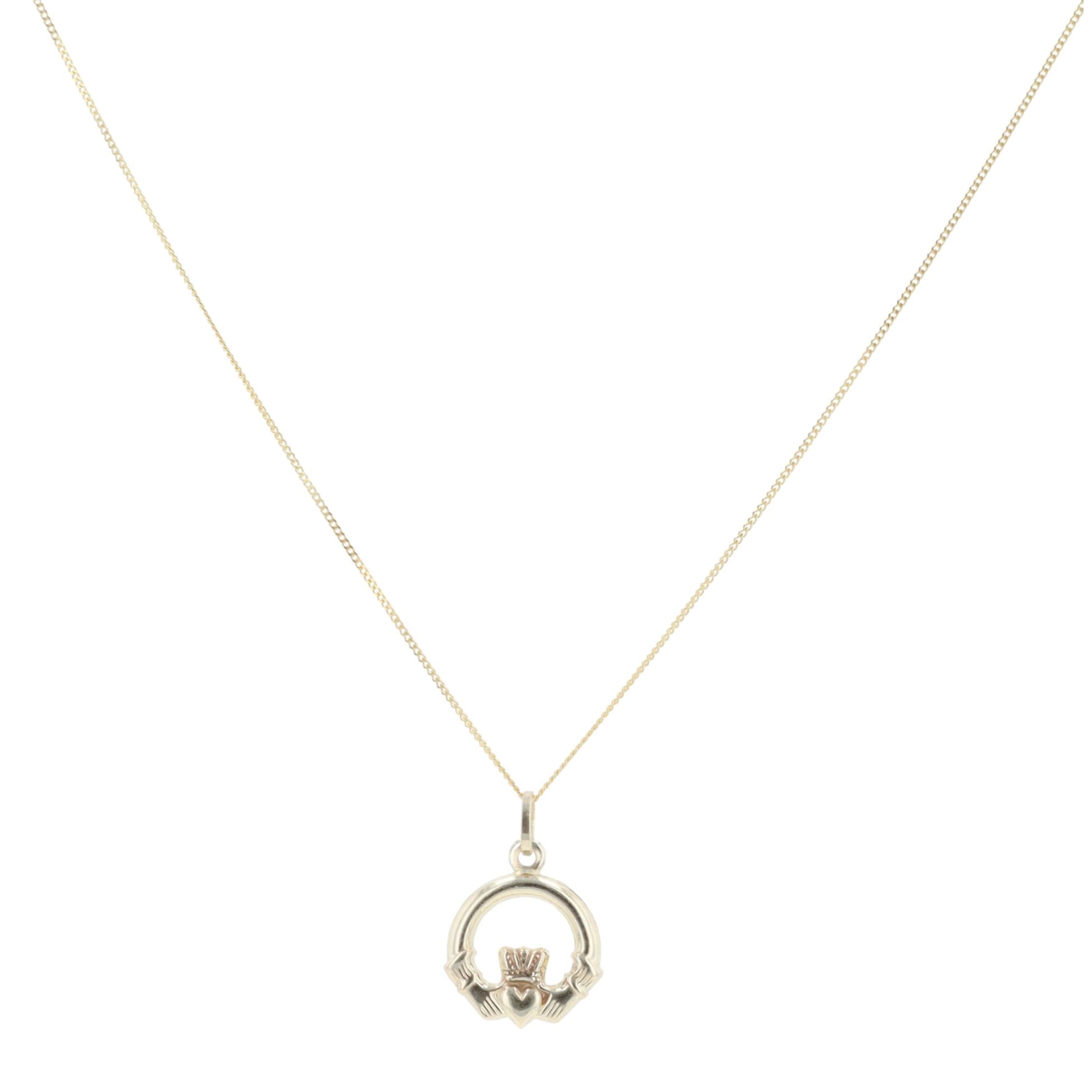 9ct Yellow Gold Claddagh Pendant and Chain 18"