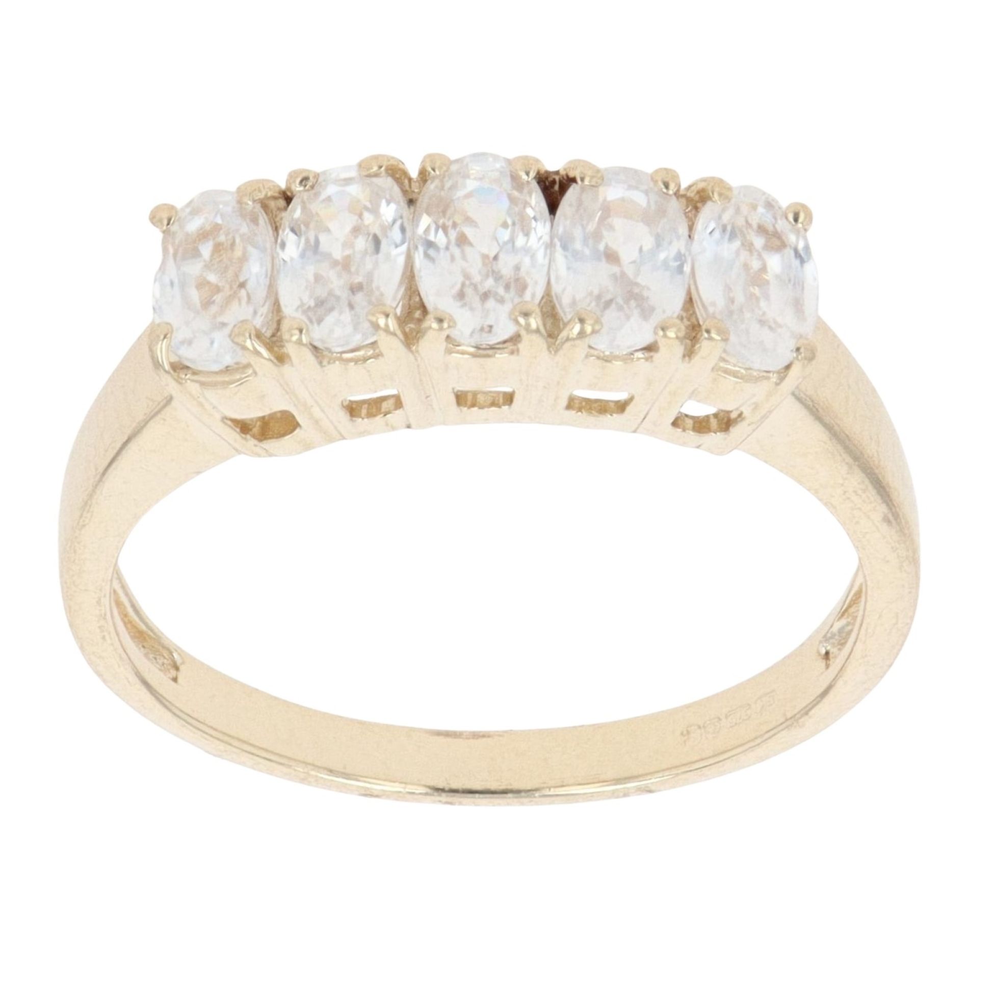 9ct Yellow Gold Colourless Gemstone Five Stone Ring