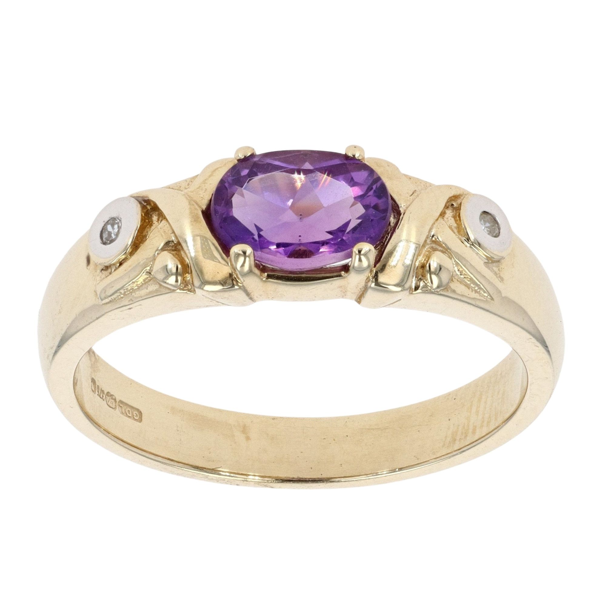 9ct Yellow Gold Created Amethyst and Diamond Dress Ring