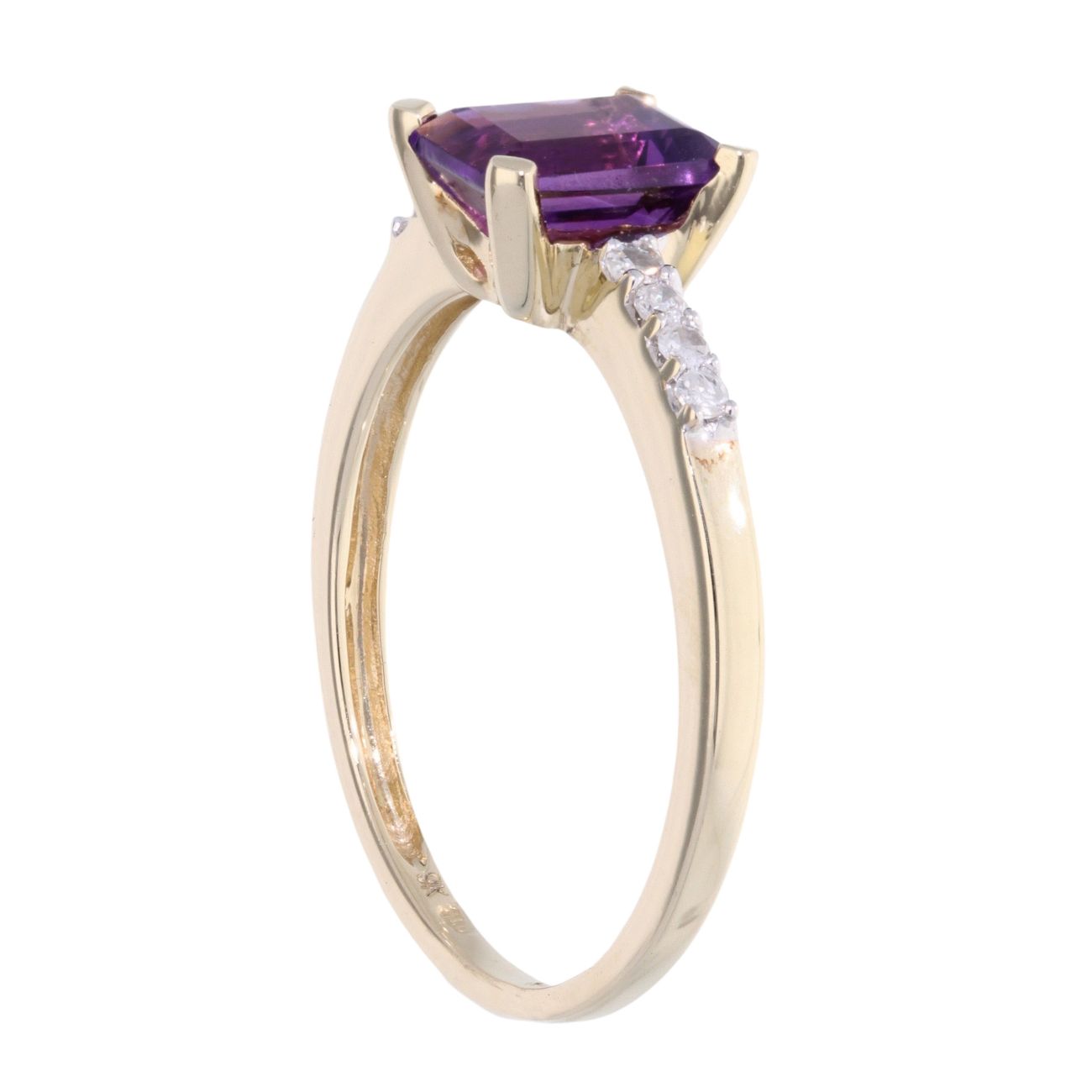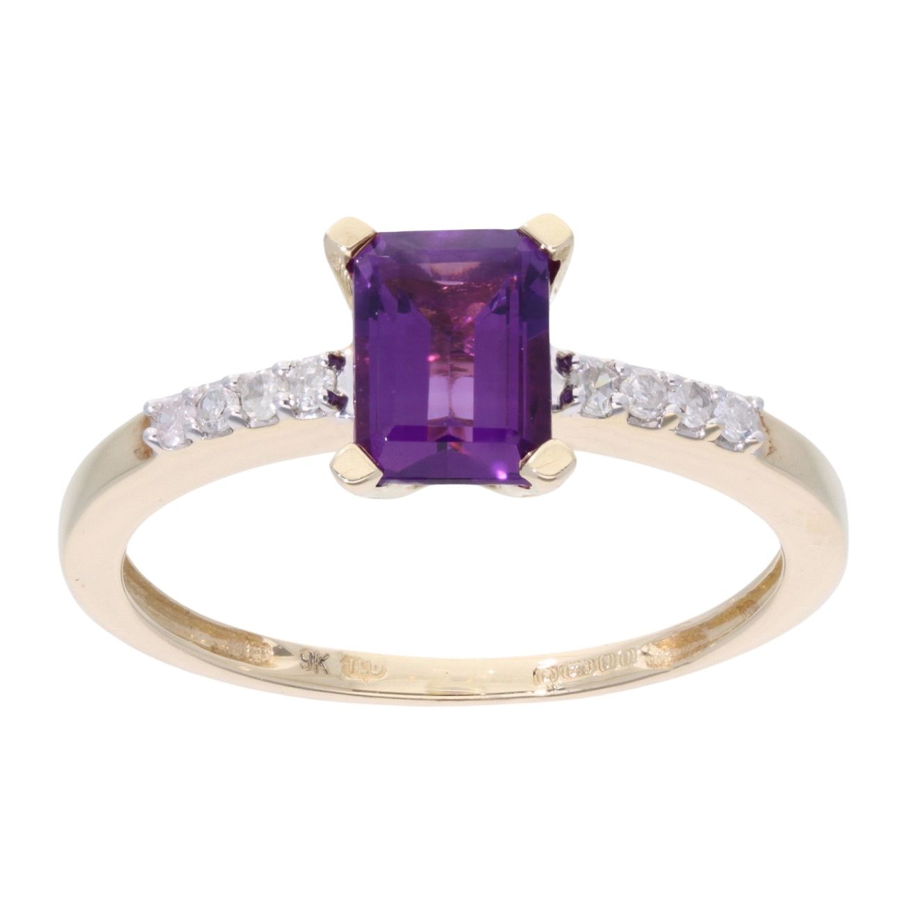 9ct Yellow Gold Created Amethyst And Diamond Ring
