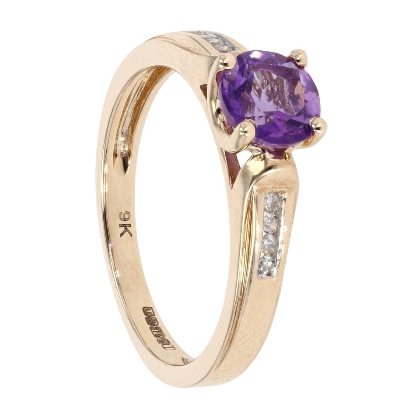 9ct Yellow Gold Created Amethyst and Diamond Shoulder Dress Ring