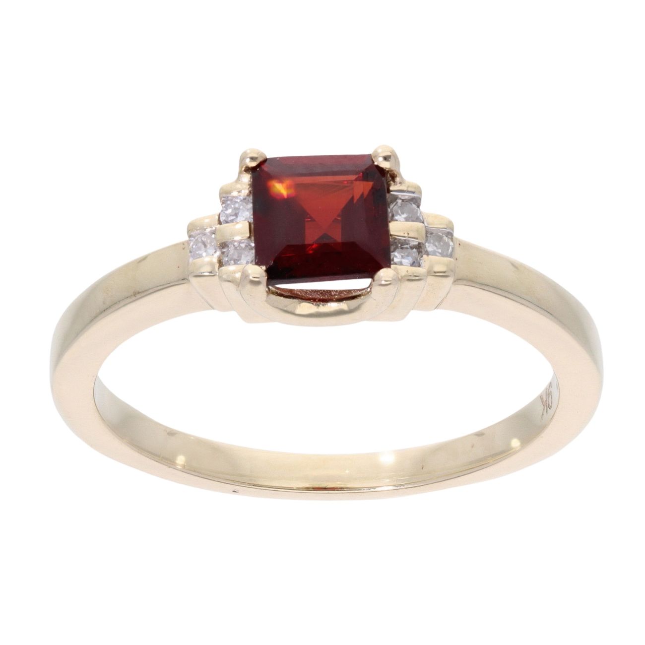 9ct Yellow Gold Created Garnet And Diamond Stone Set Ring