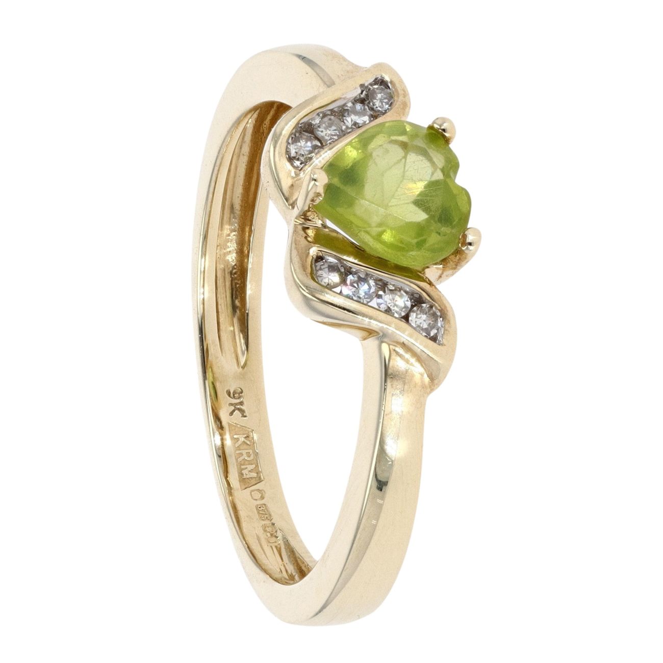 9ct Yellow Gold Created Peridot and Diamond Heart Ring