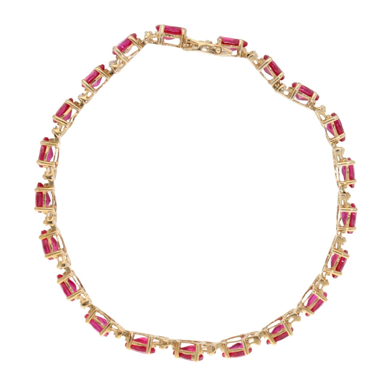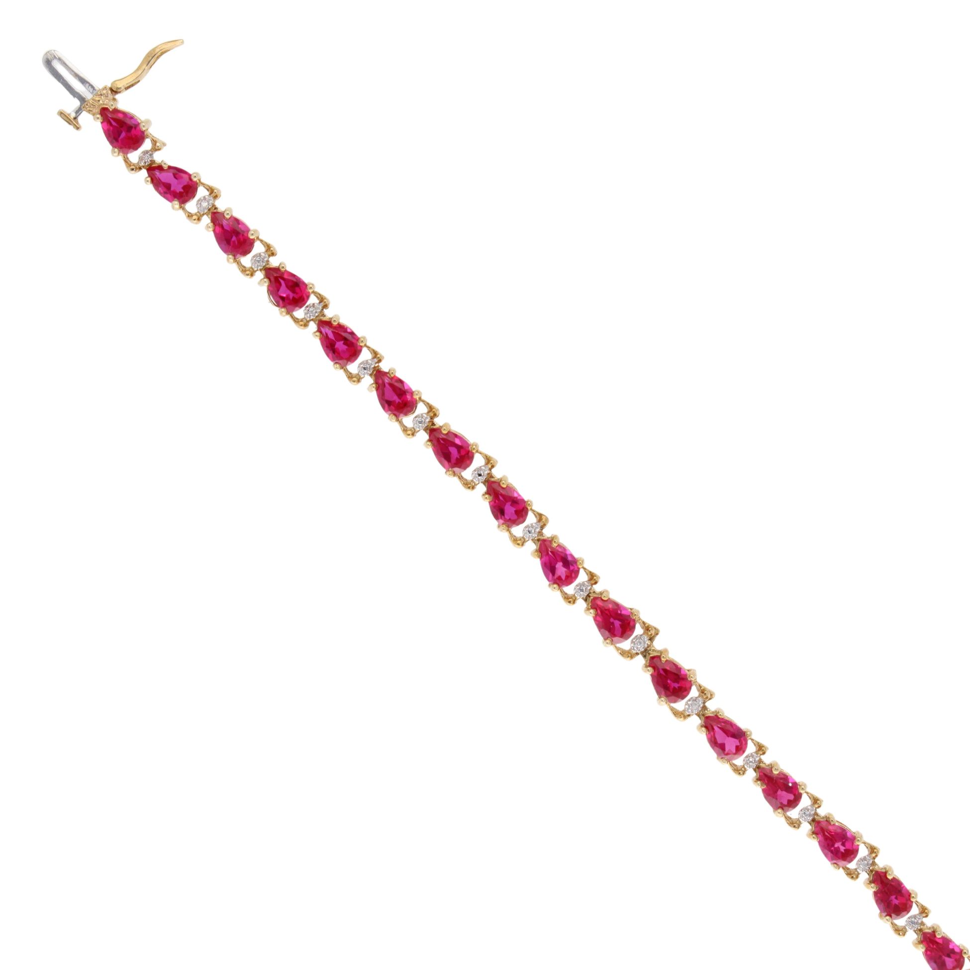9ct Yellow Gold Created Ruby and Diamond Bracelet 7"
