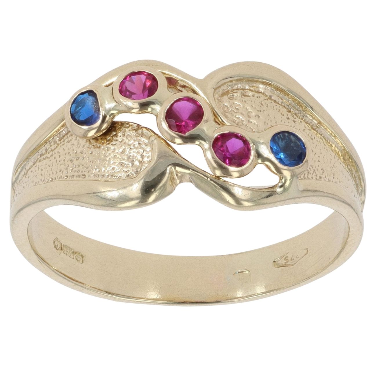 9ct Yellow Gold Created Sapphire And Created Ruby Five Stone Ring