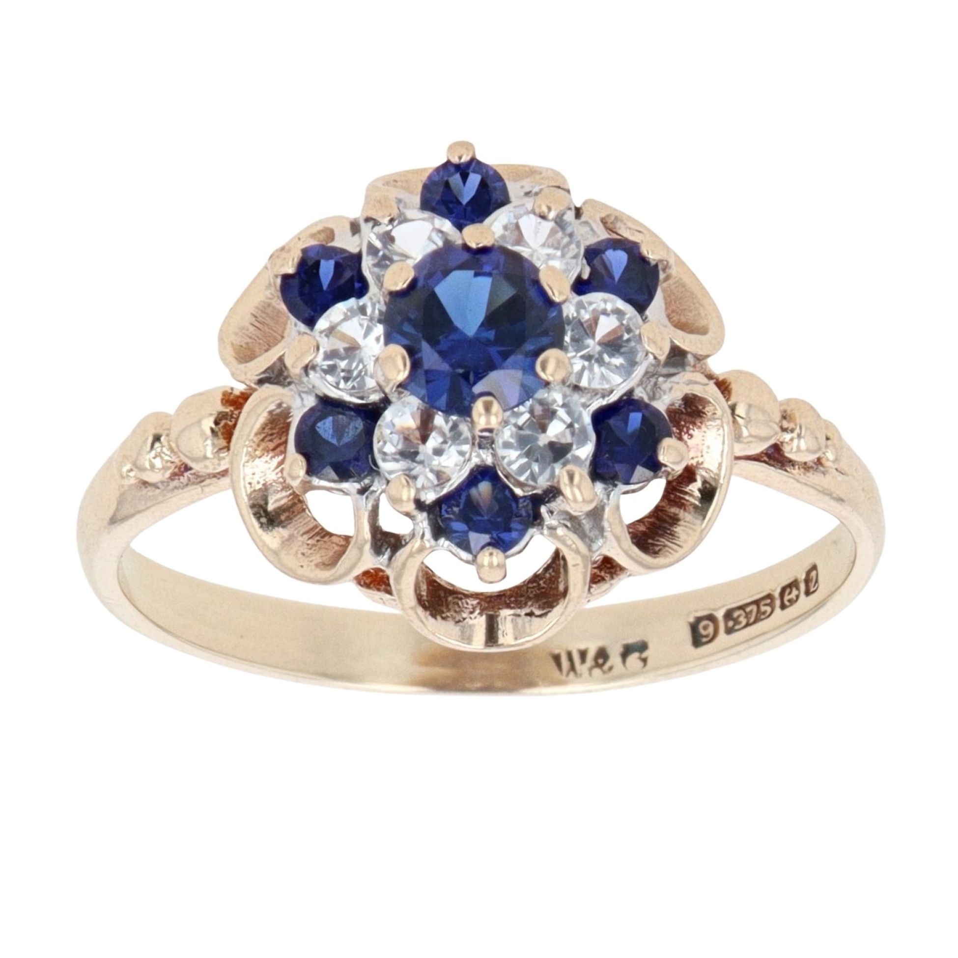 9ct Yellow Gold Created Sapphire And Cubic Zirconia Cluster Ring