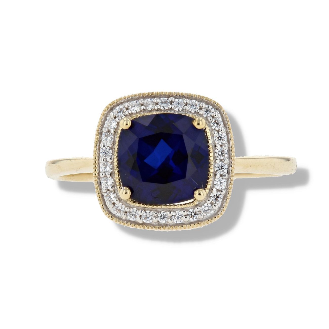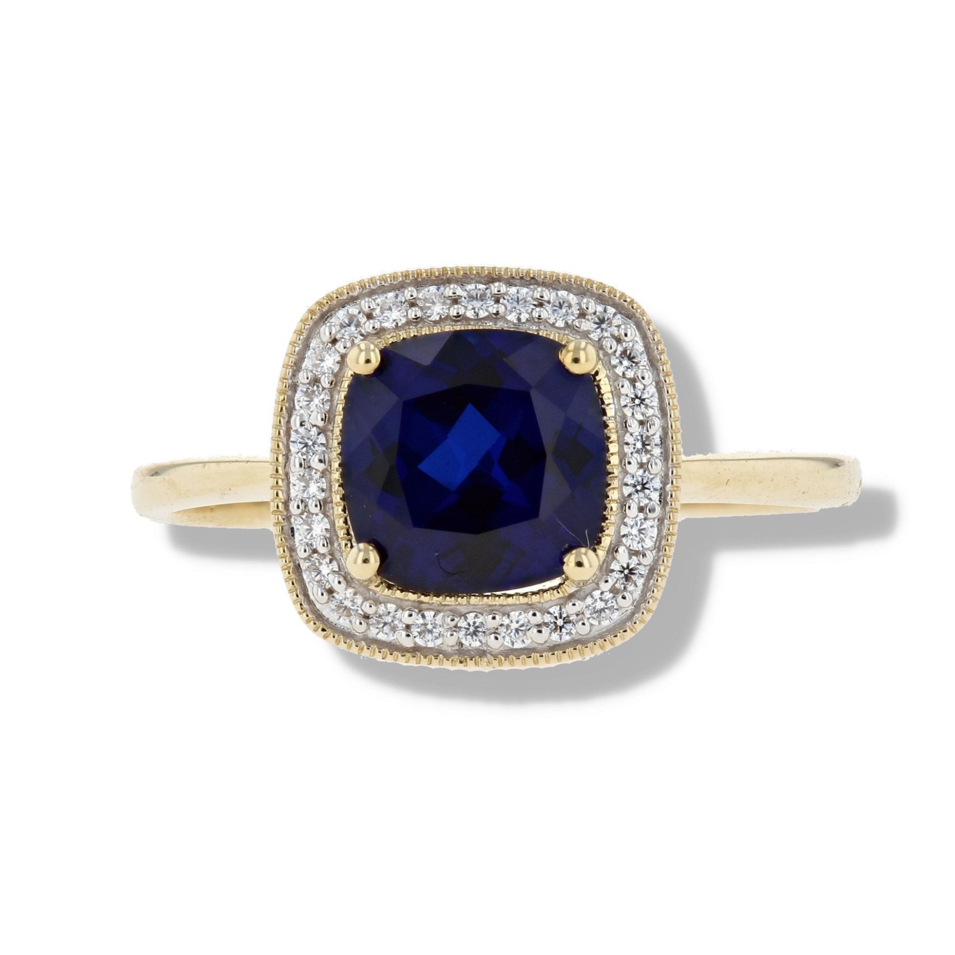 9ct Yellow Gold Created Sapphire And Cubic Zirconia Cluster Ring