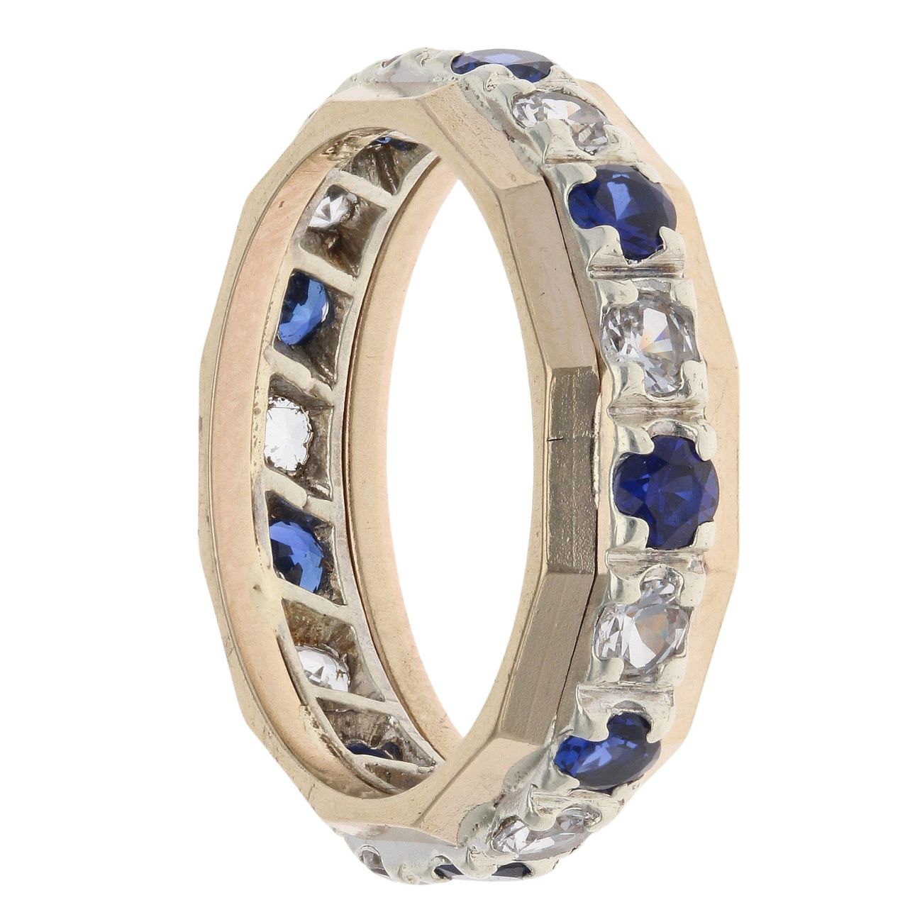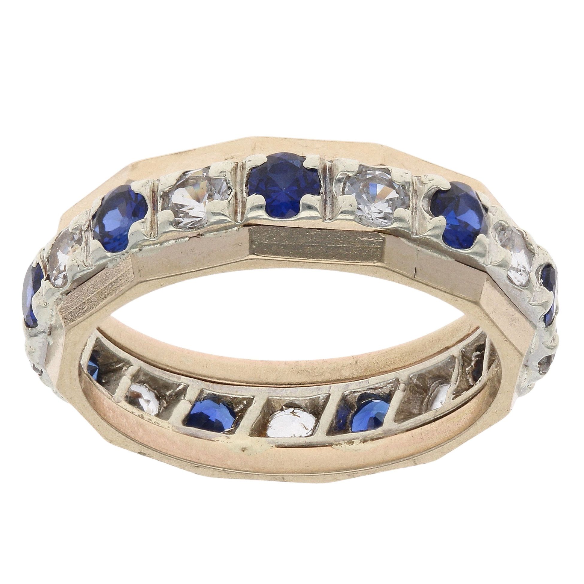 9ct Yellow Gold Created Sapphire and Cubic Zirconia Ring