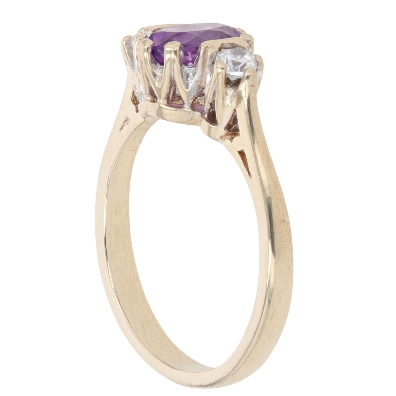 9ct Yellow Gold Cubic Zirconia and Amethyst Dress Ring
