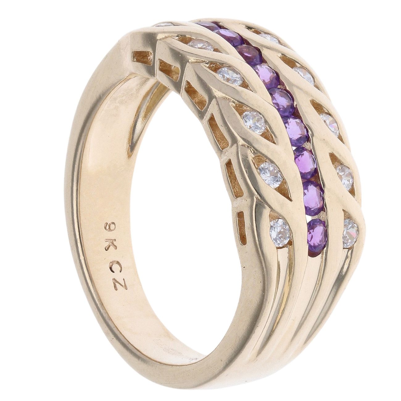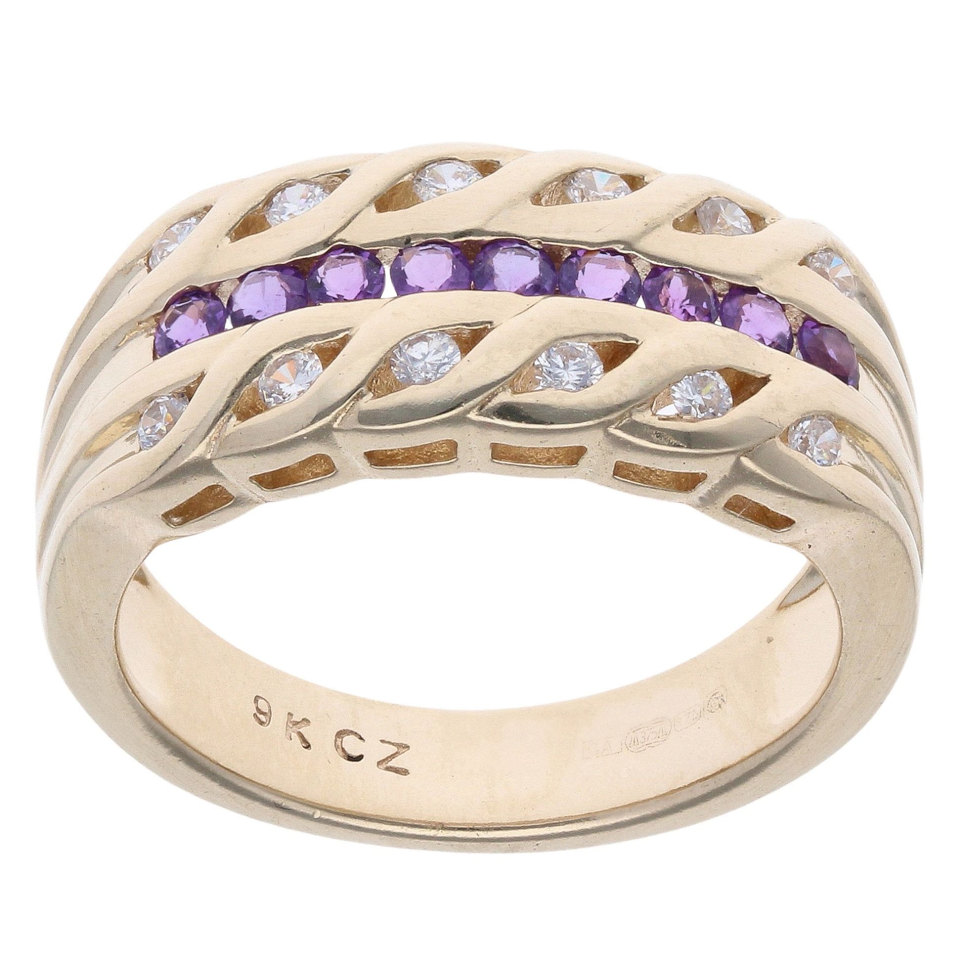 9ct Yellow Gold Cubic Zirconia And Amethyst Ring