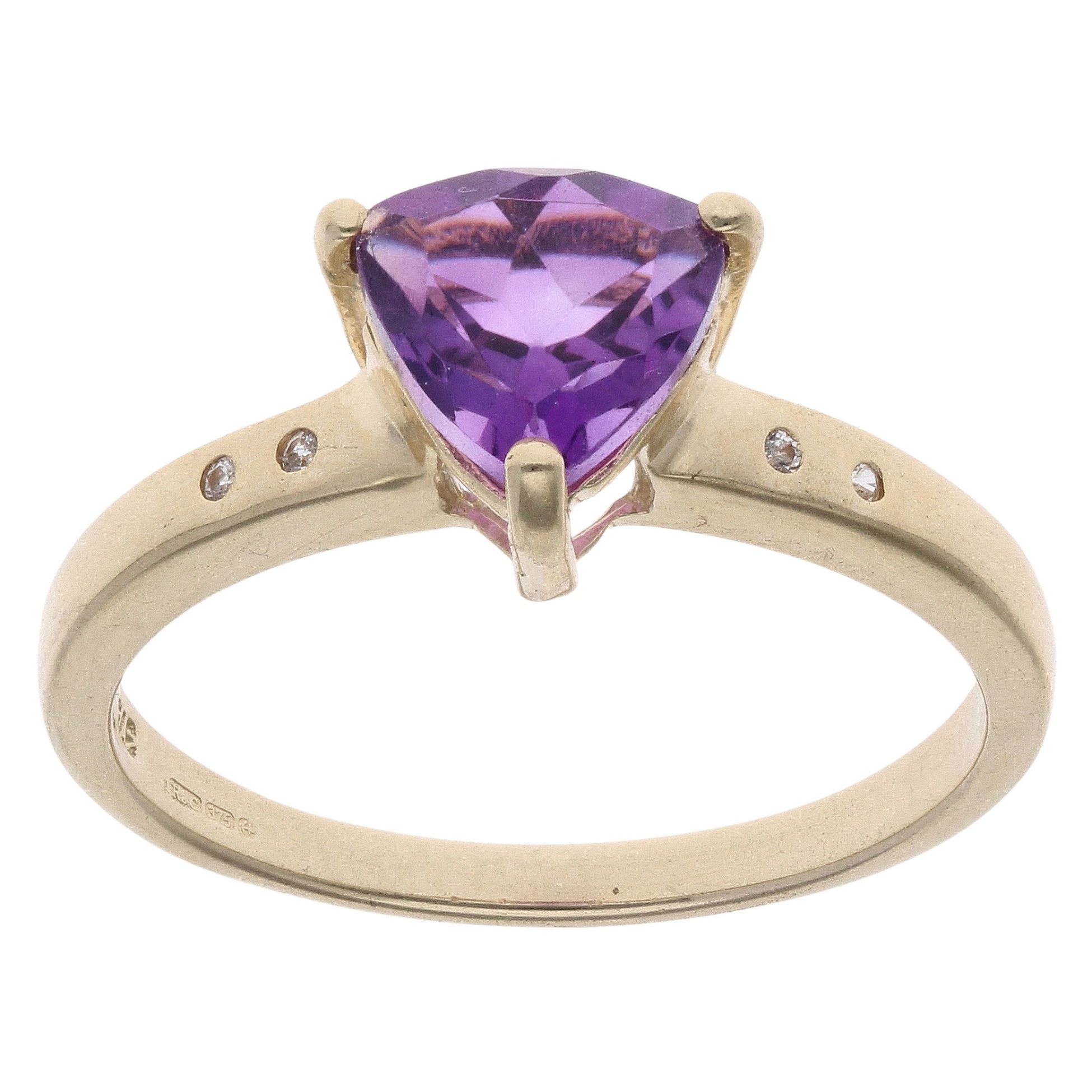 9ct Yellow Gold Cubic Zirconia and Amethyst Solitaire Ring