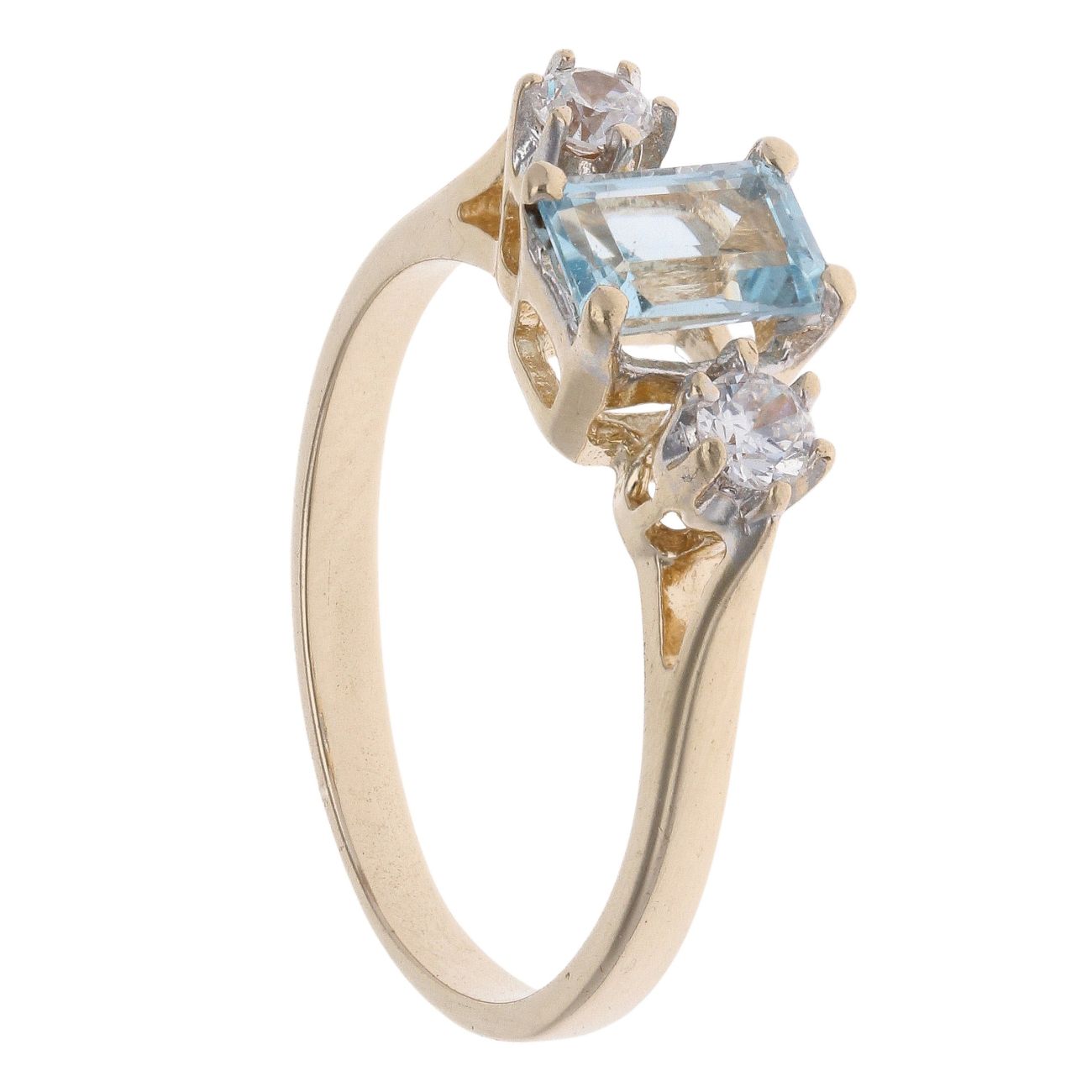 9ct Yellow Gold Cubic Zirconia and Aquamarine Three Stone Ring