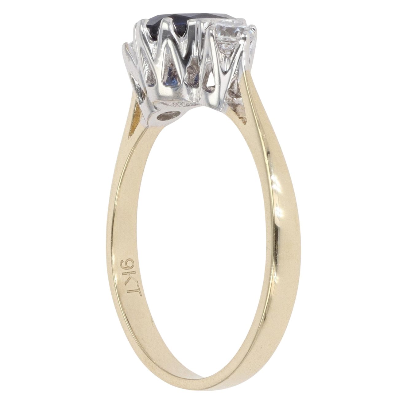 9ct Yellow Gold Cubic Zirconia and Blue Gem Three Stone Ring
