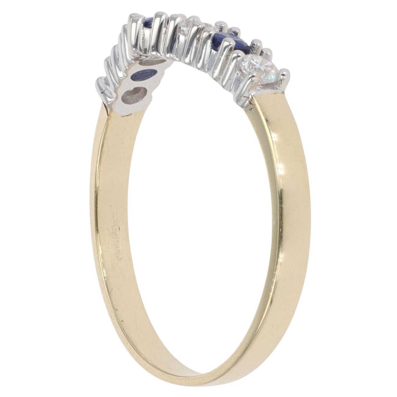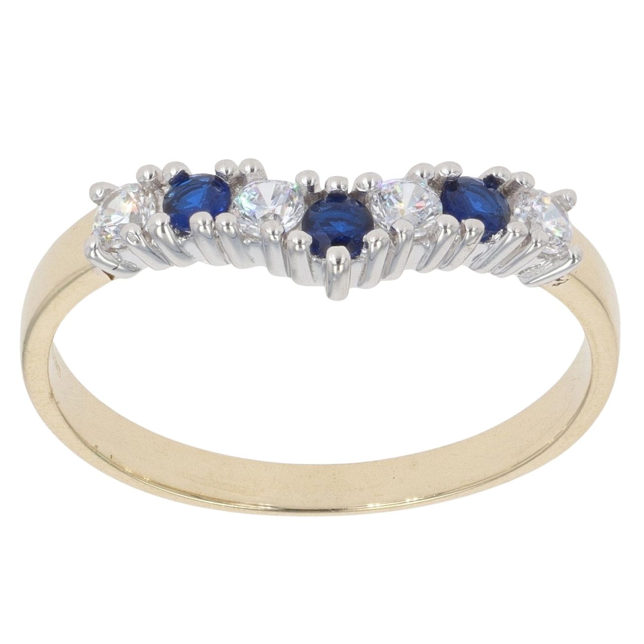 9ct Yellow Gold Cubic Zirconia and Blue Gem Wishbone Ring