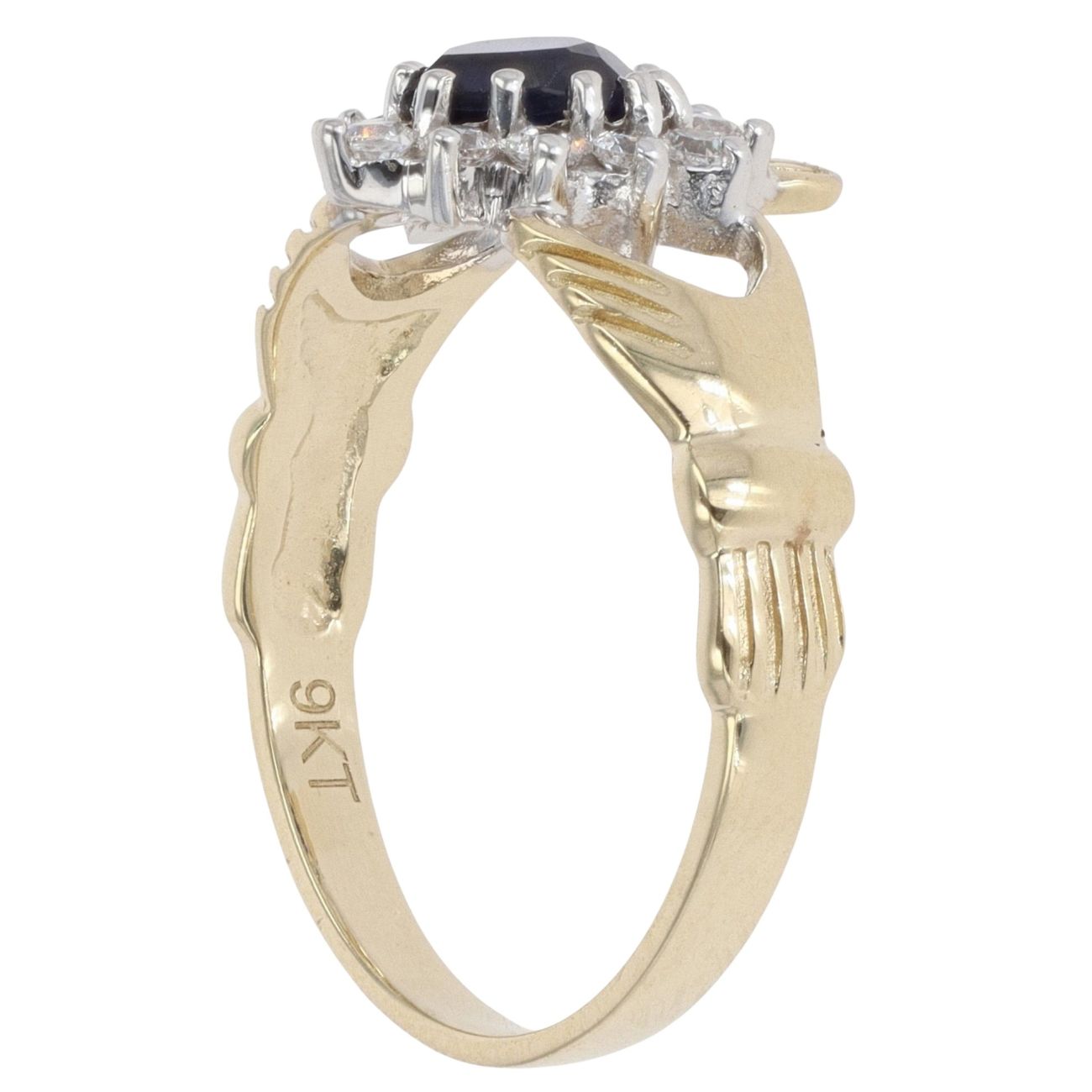 9ct Yellow Gold Cubic Zirconia and Blue Gemstone Claddagh Ring