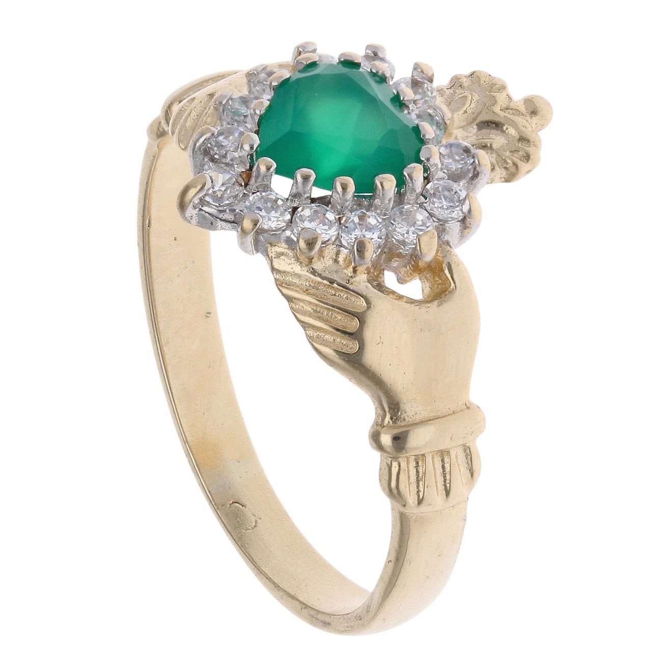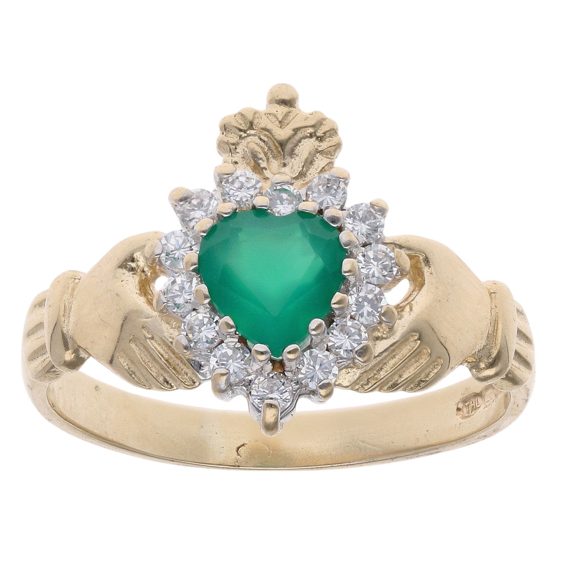 9ct Yellow Gold Cubic Zirconia And Green Gemstone Claddagh Ring