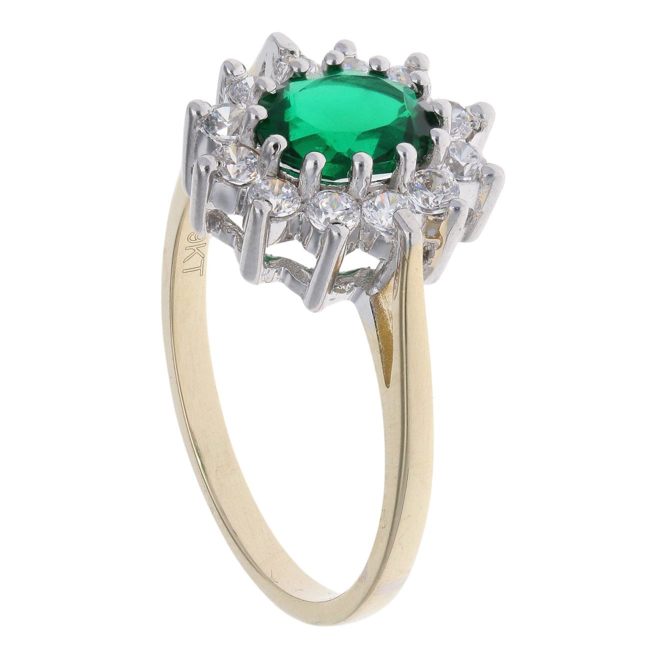 9ct Yellow Gold Cubic Zirconia and Green Gemstone Cluster Ring