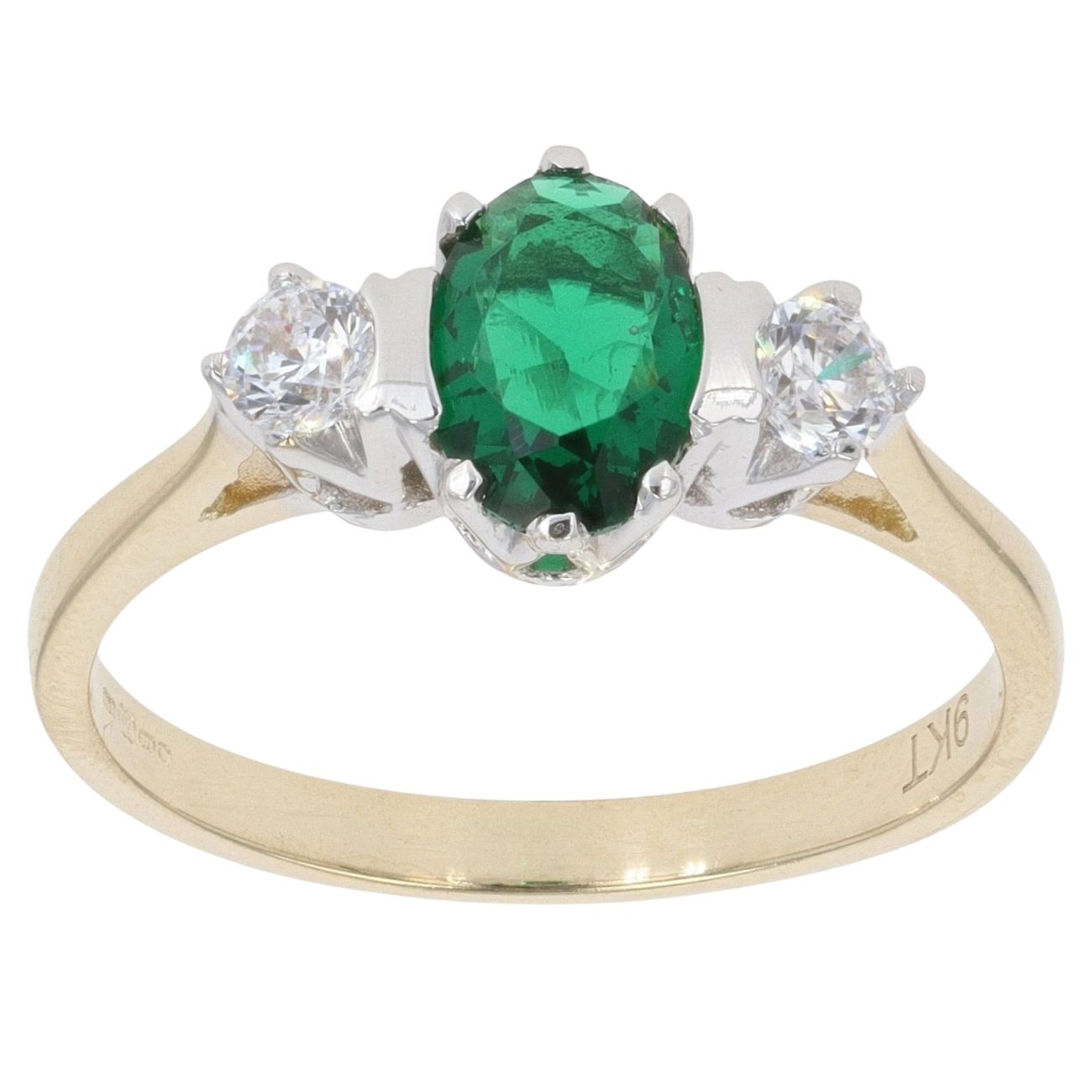 9ct Yellow Gold Cubic Zirconia and Green Gemstone Three Stone Ring