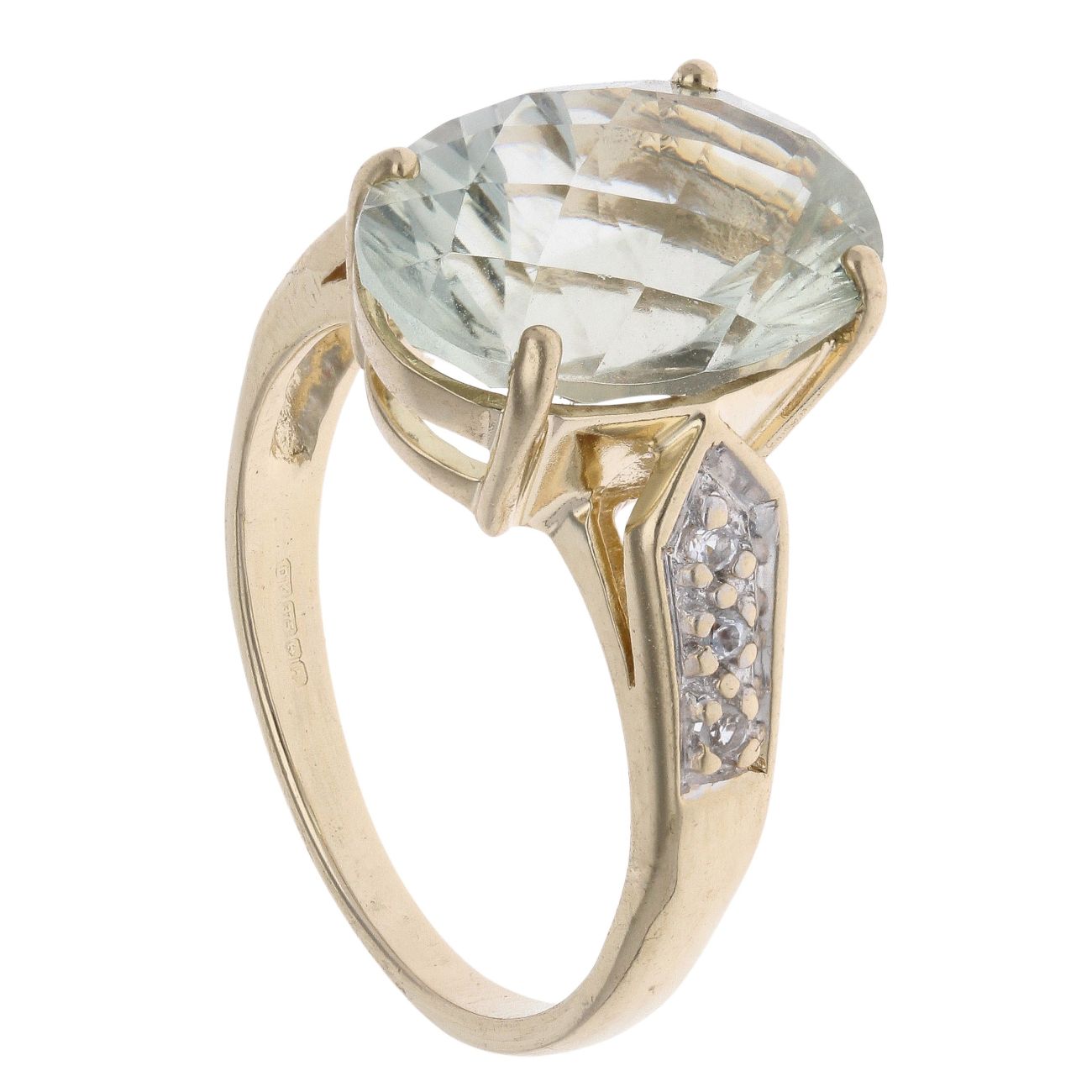 9ct Yellow Gold Cubic Zirconia and Green Quartz Solitaire Ring