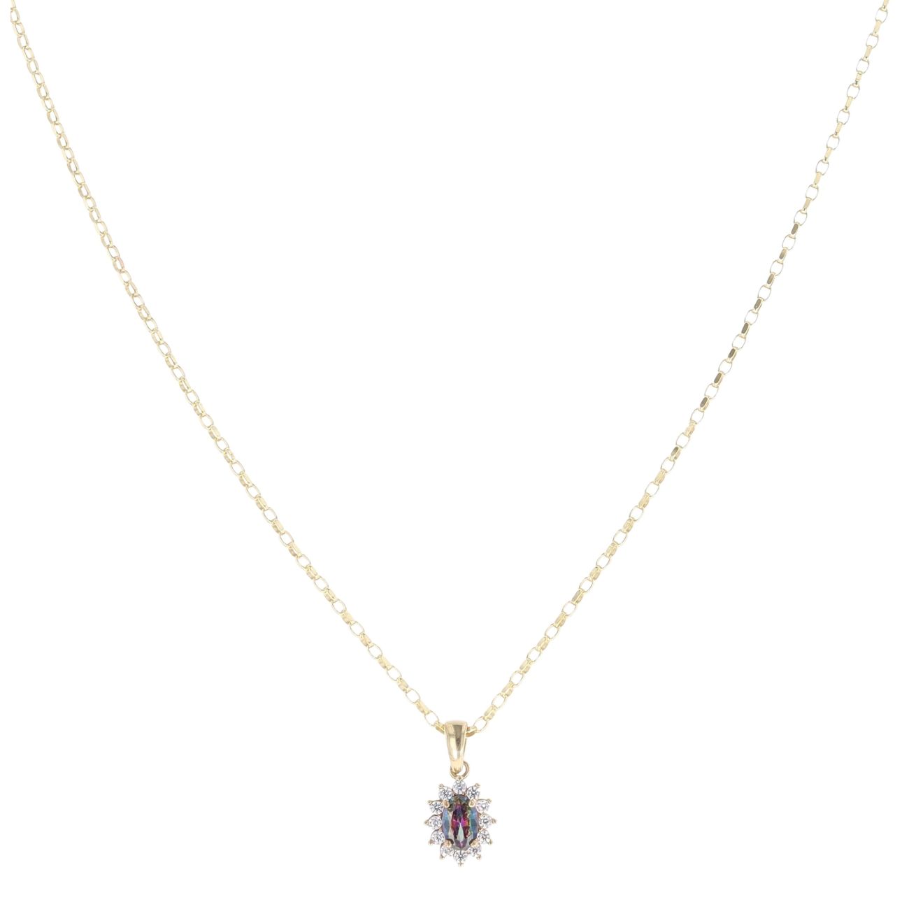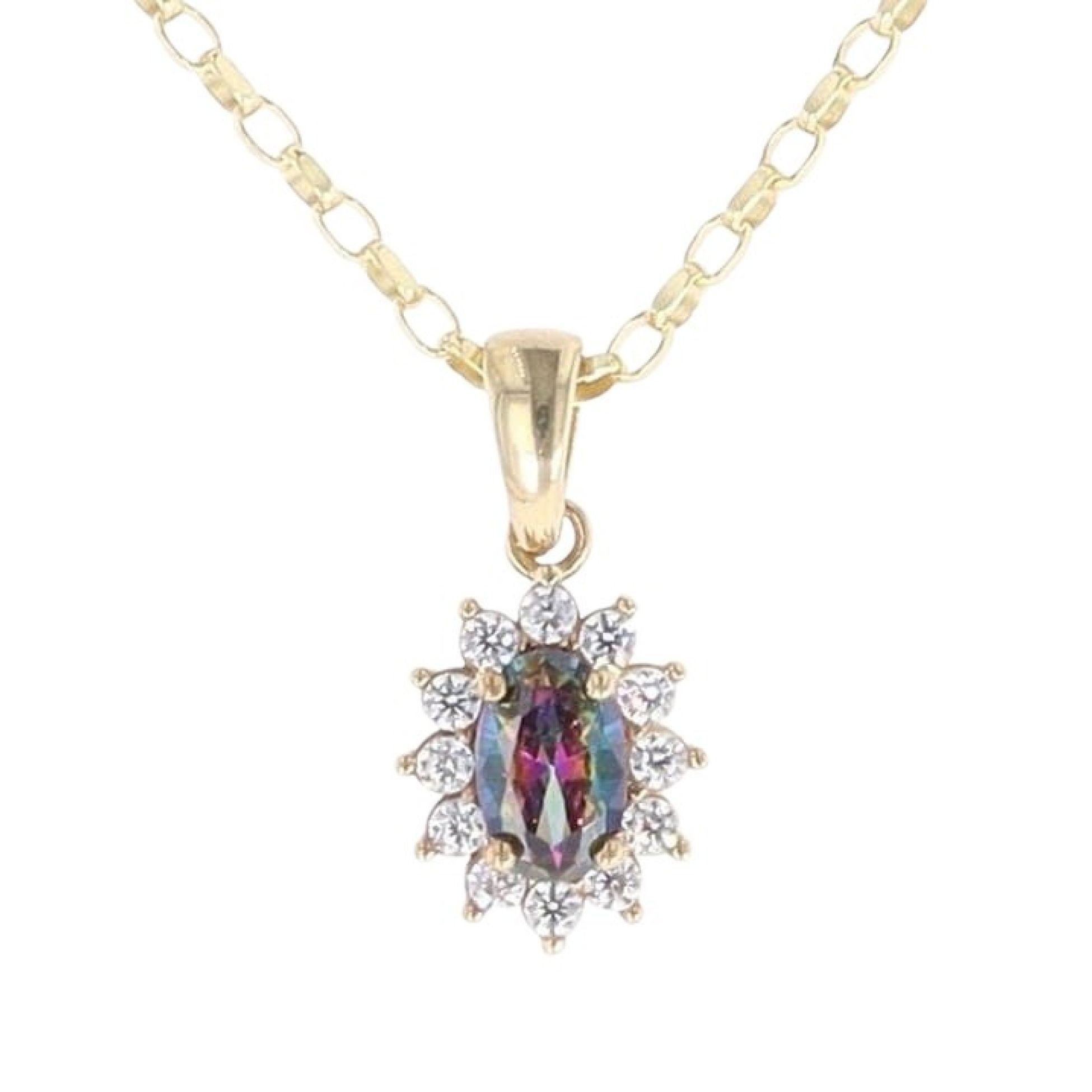 9ct Yellow Gold Cubic Zirconia and Mystic Topaz Cluster Pendant and Chain 18"