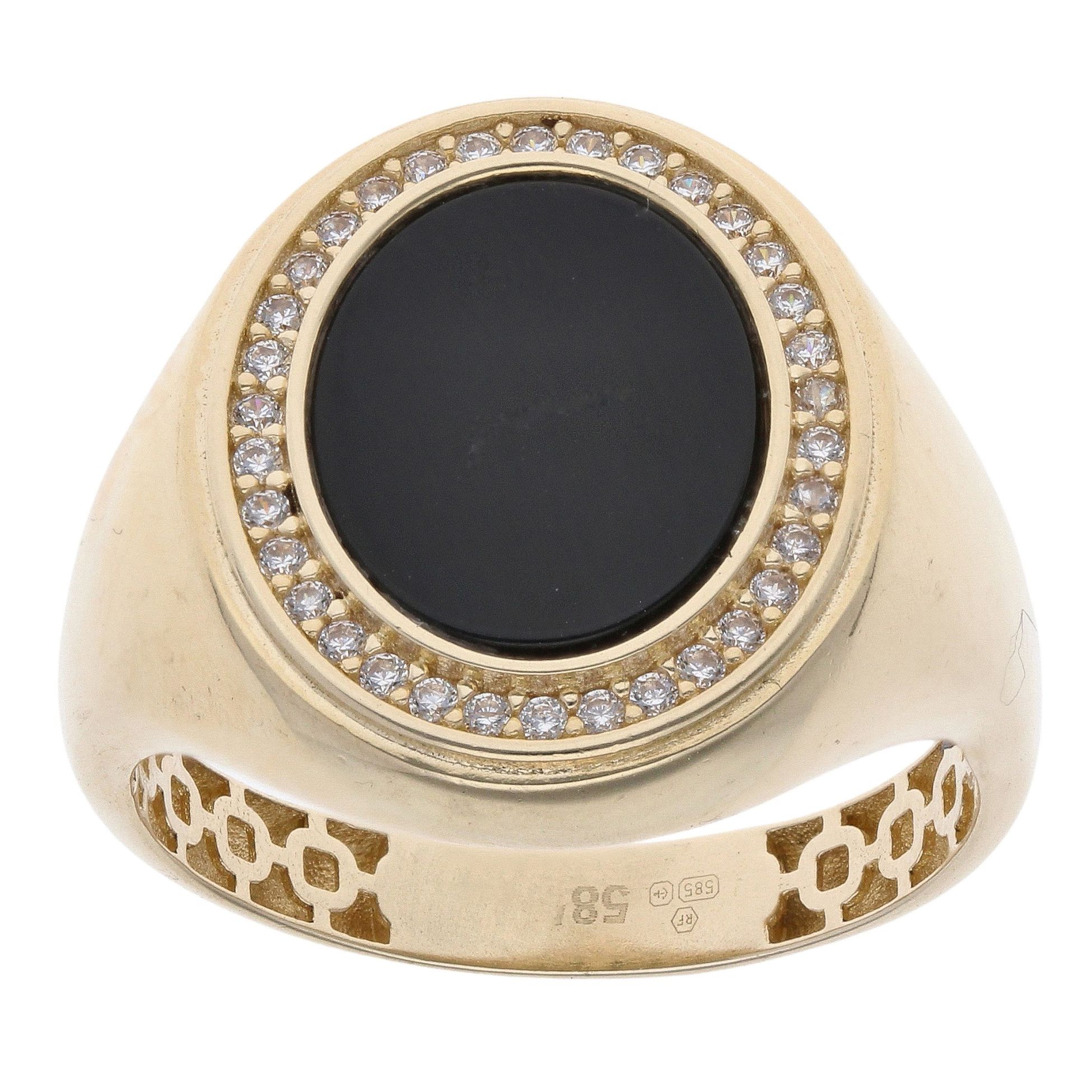 9ct Yellow Gold Cubic Zirconia and Onyx Oval Signet Ring