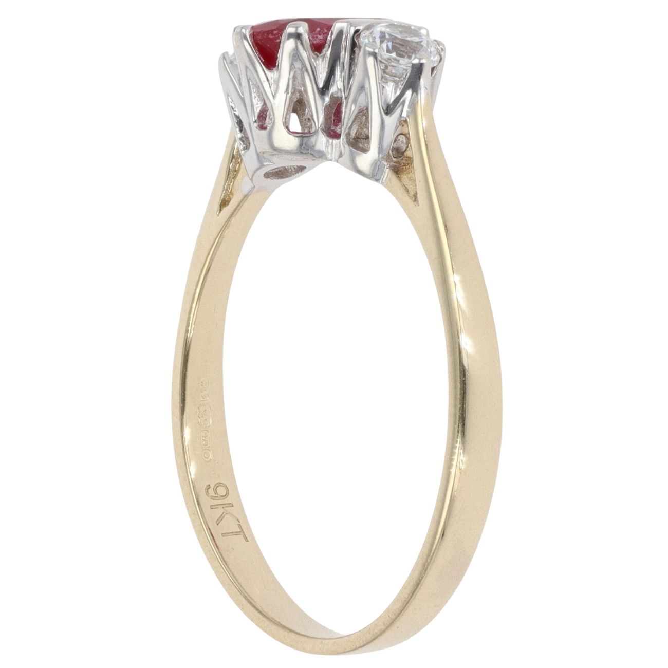 9ct Yellow Gold Cubic Zirconia and Red Gemstone Three Stone Ring