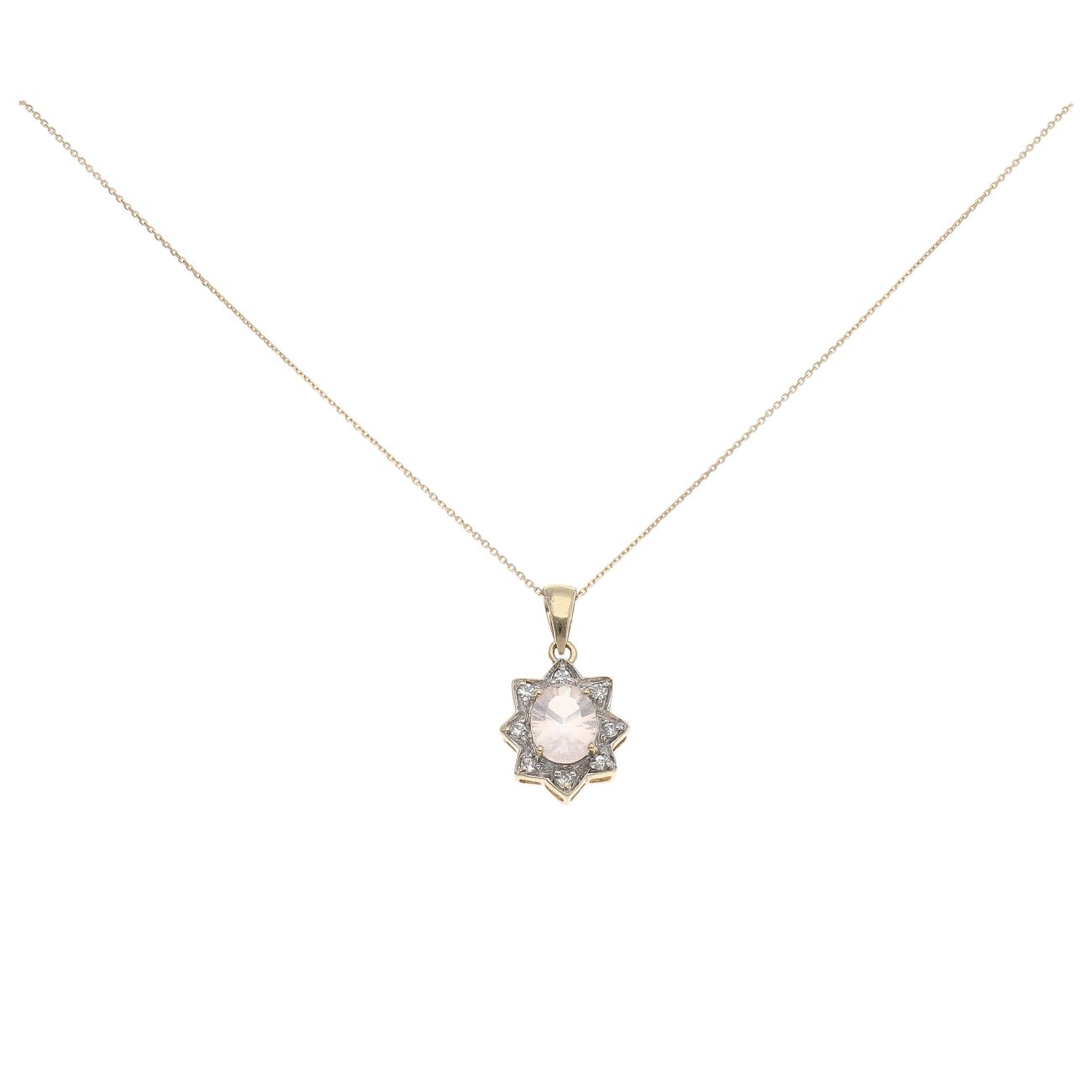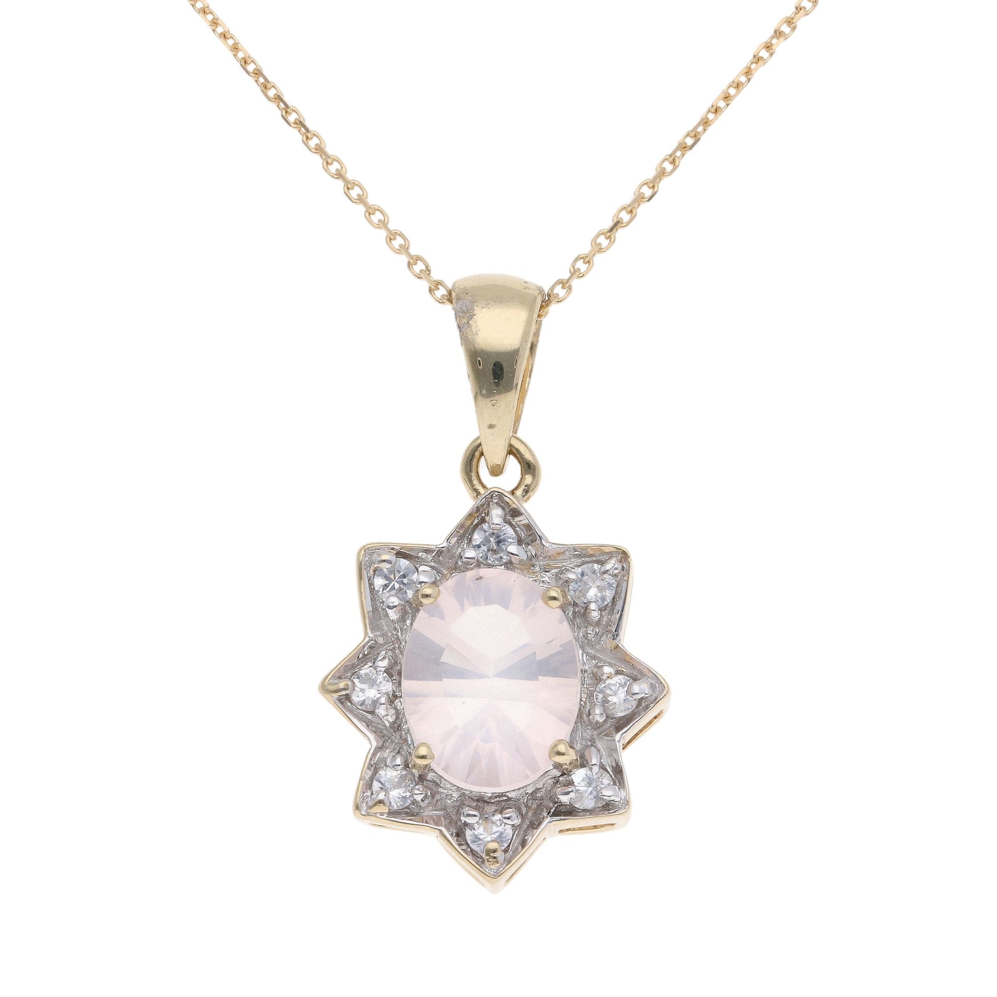 9ct Yellow Gold Cubic Zirconia and Rose Quartz Pendant and Chain 18"