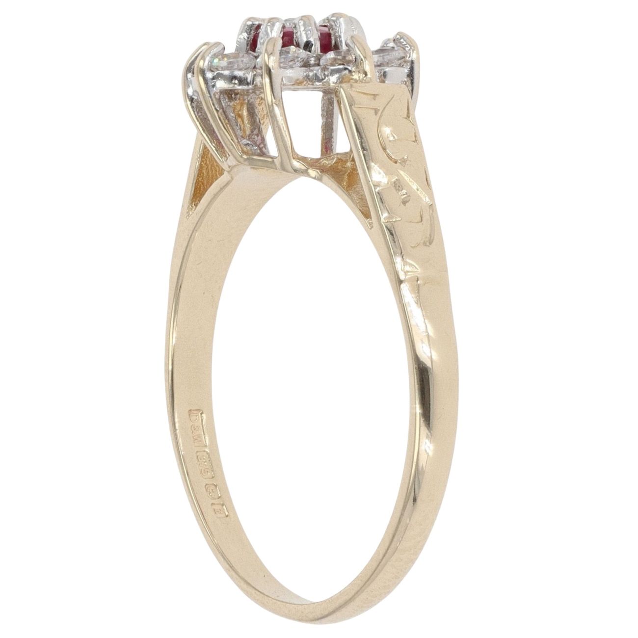 9ct Yellow Gold Cubic Zirconia and Ruby Cluster Ring