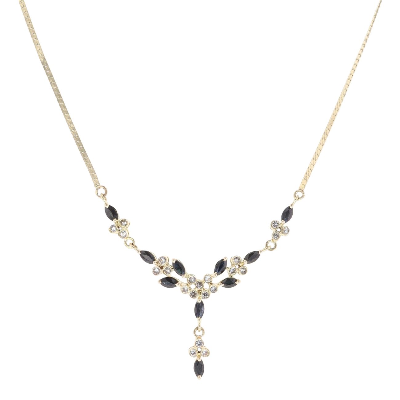 9ct Yellow Gold Cubic Zirconia and Sapphire Chain 18"