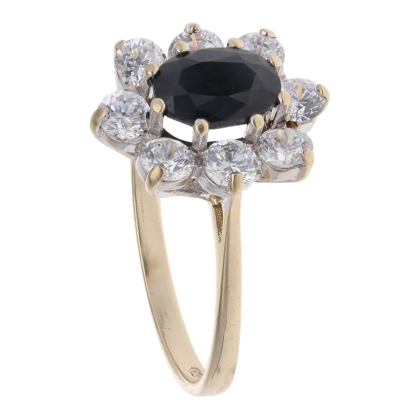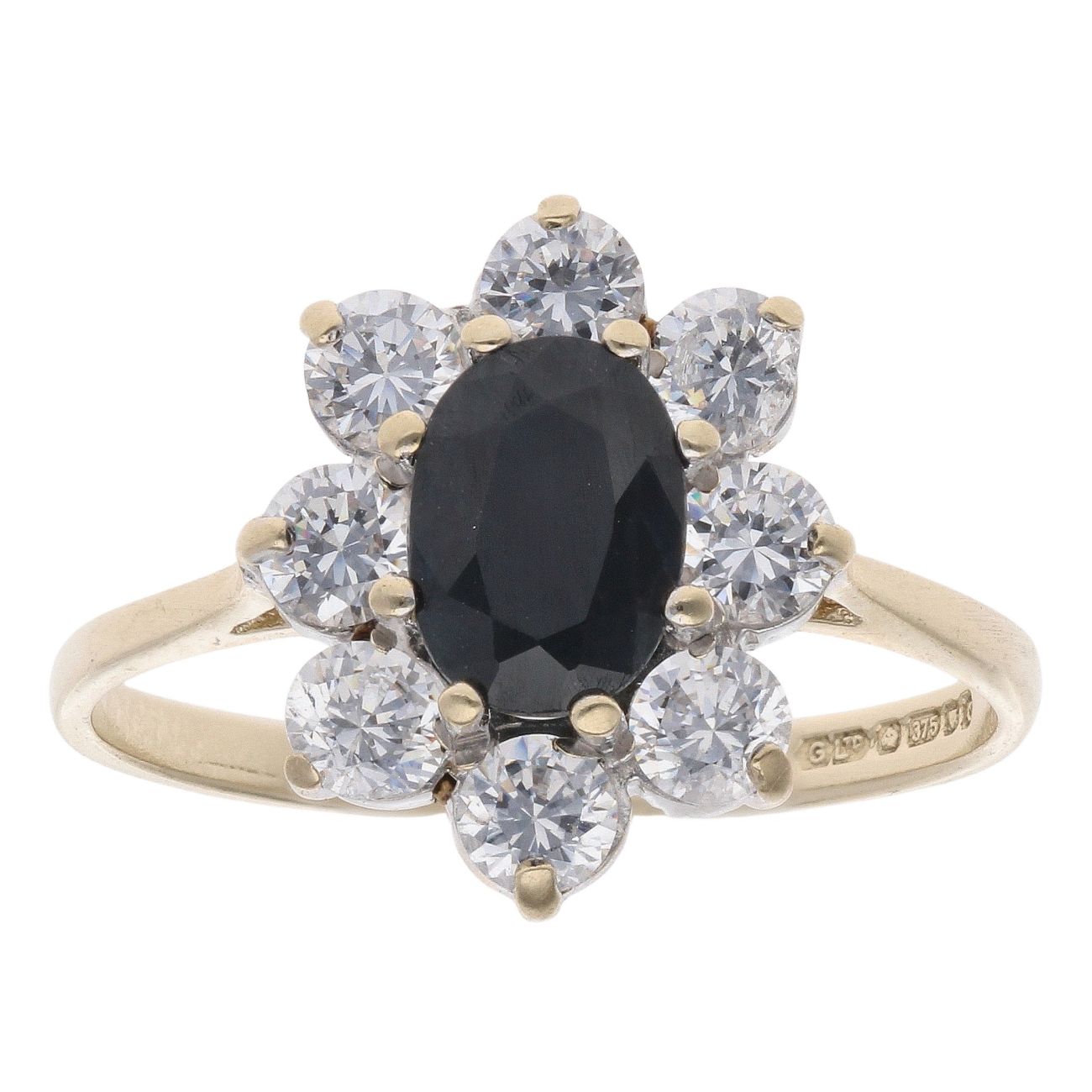 9ct Yellow Gold Cubic Zirconia and Sapphire Cluster Ring