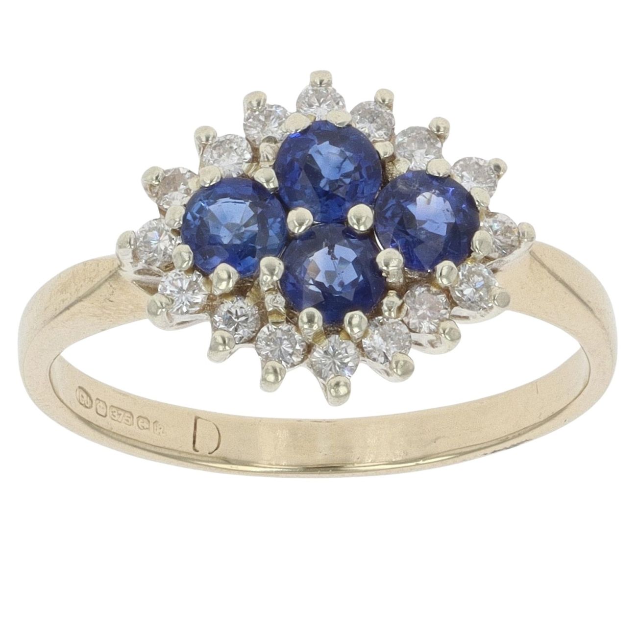 9ct Yellow Gold Cubic Zirconia and Sapphire Cluster Ring