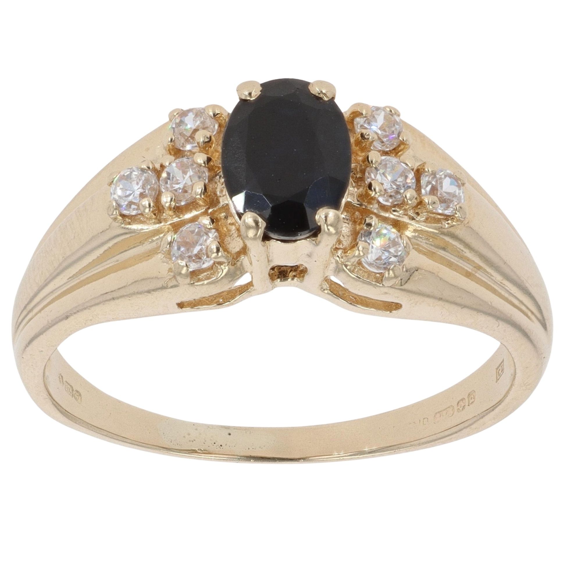 9ct Yellow Gold Cubic Zirconia and Sapphire Ring