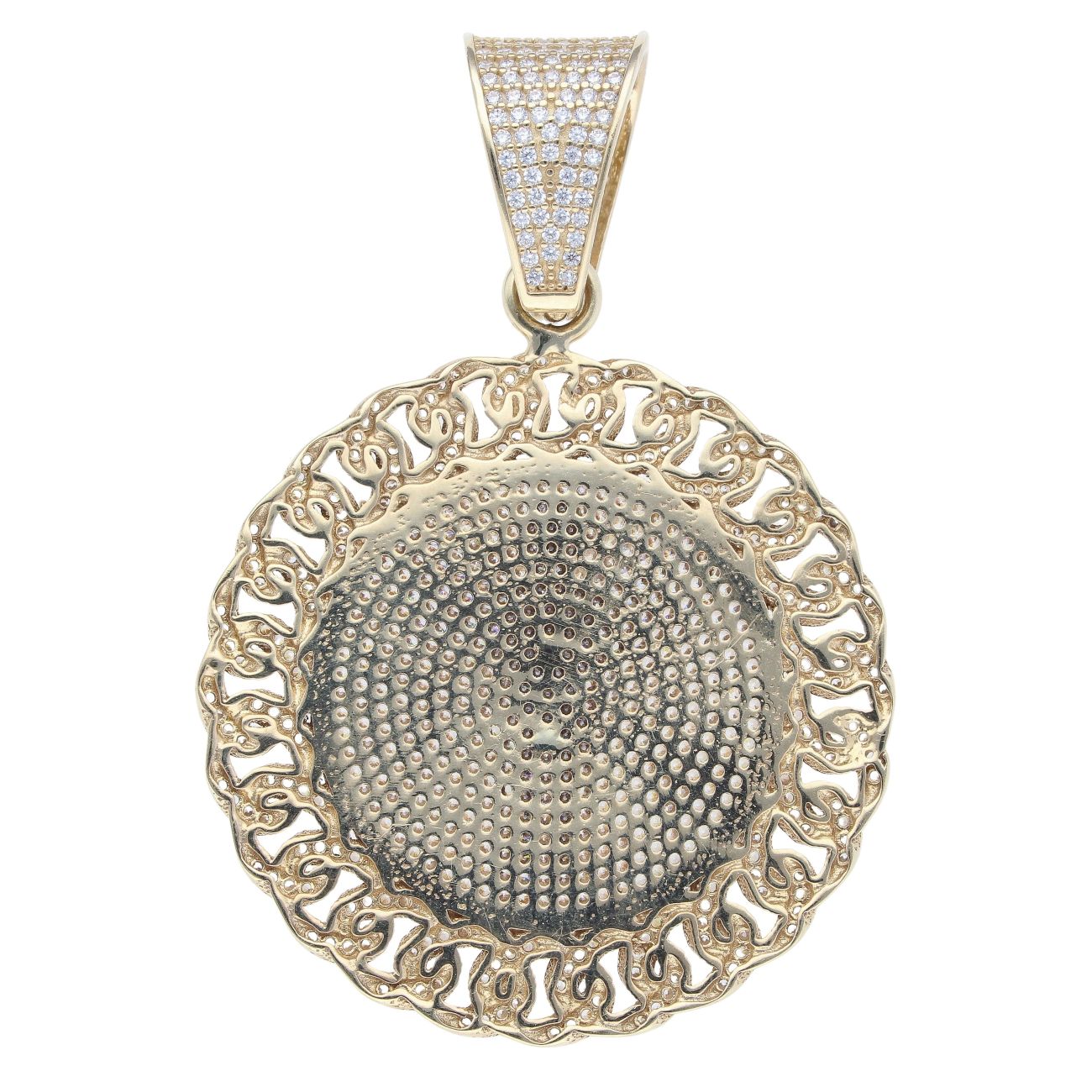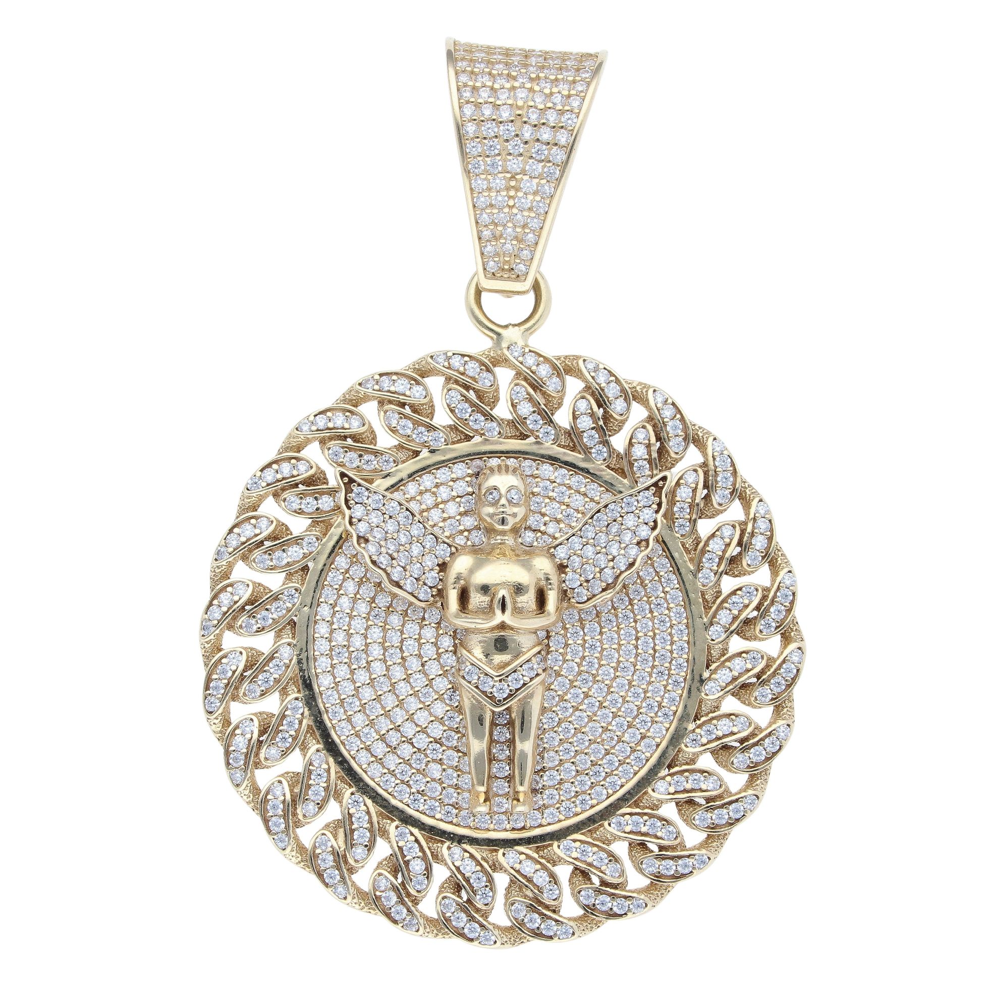 9ct Yellow Gold Cubic Zirconia Cherub Circle Pendant