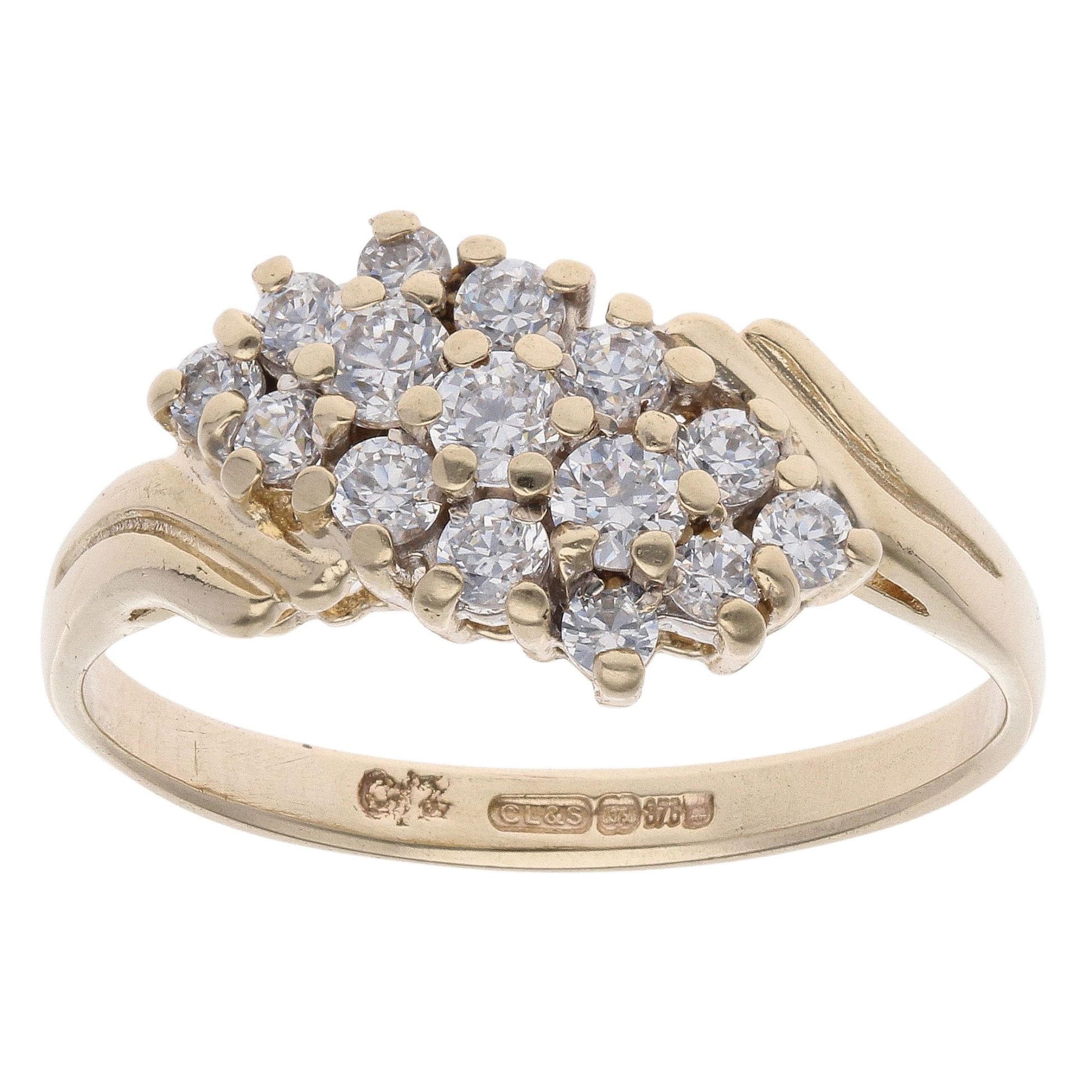 9ct Yellow Gold Cubic Zirconia Cluster Ring