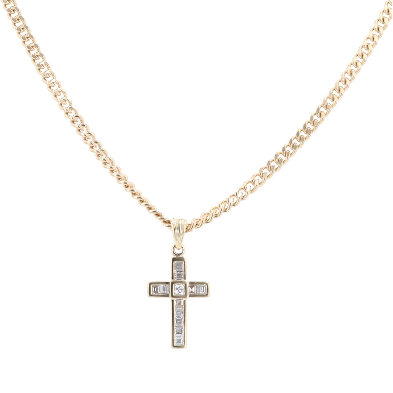 9ct Yellow Gold Cubic Zirconia Cross Pendant And Chain 18"