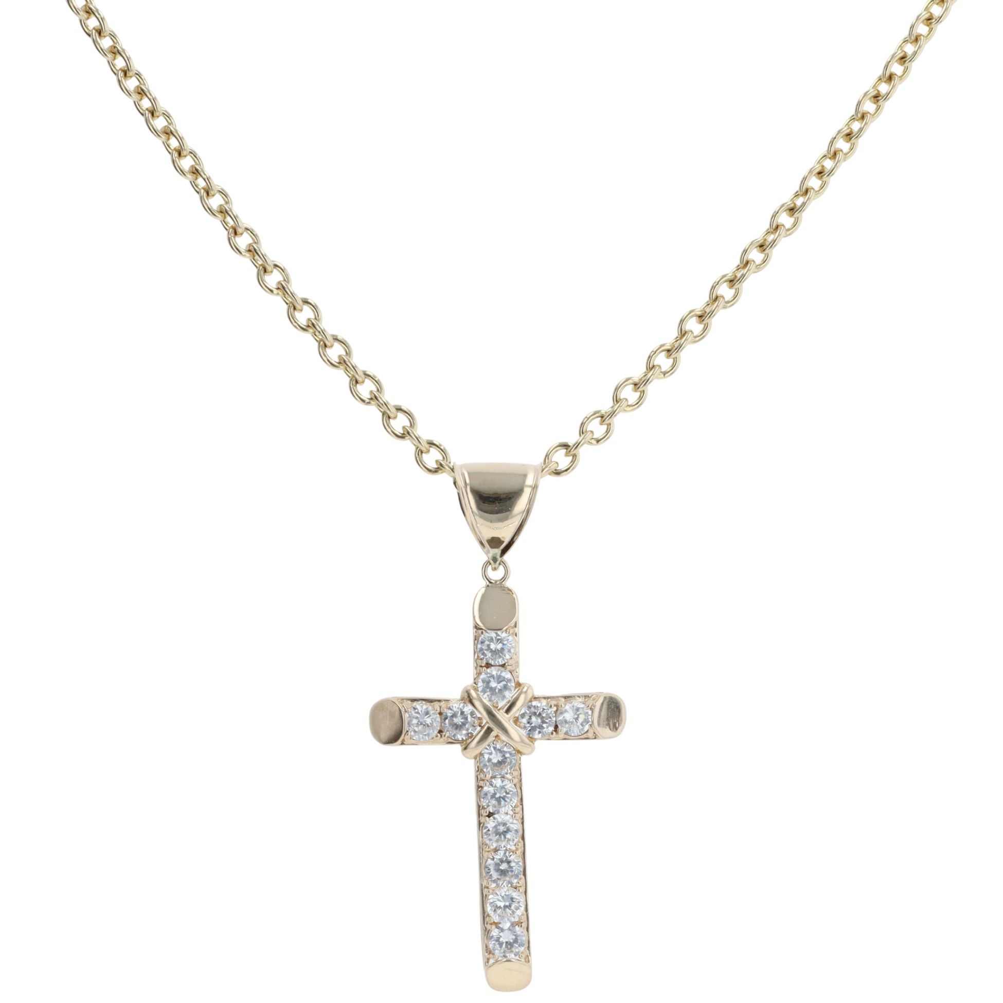 9ct Yellow Gold Cubic Zirconia Cross Pendant And Chain 24"